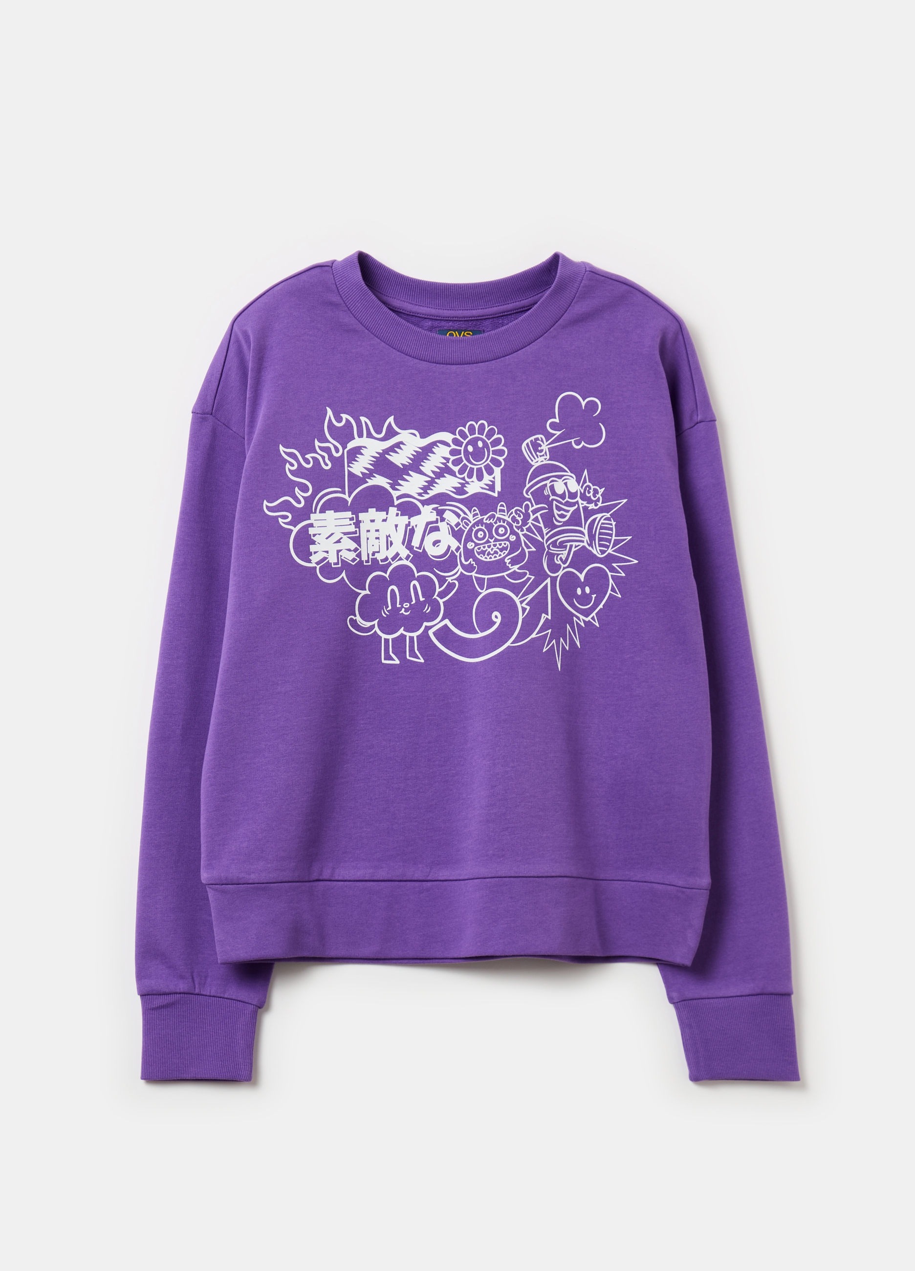 French Terry sweatshirt with print, ideal for autumn and winter. Purple color, the casual design makes it suitable for multiple occasions. Made with quality materials to ensure comfort and resistance. Perfect for a trendy and comfortable look.