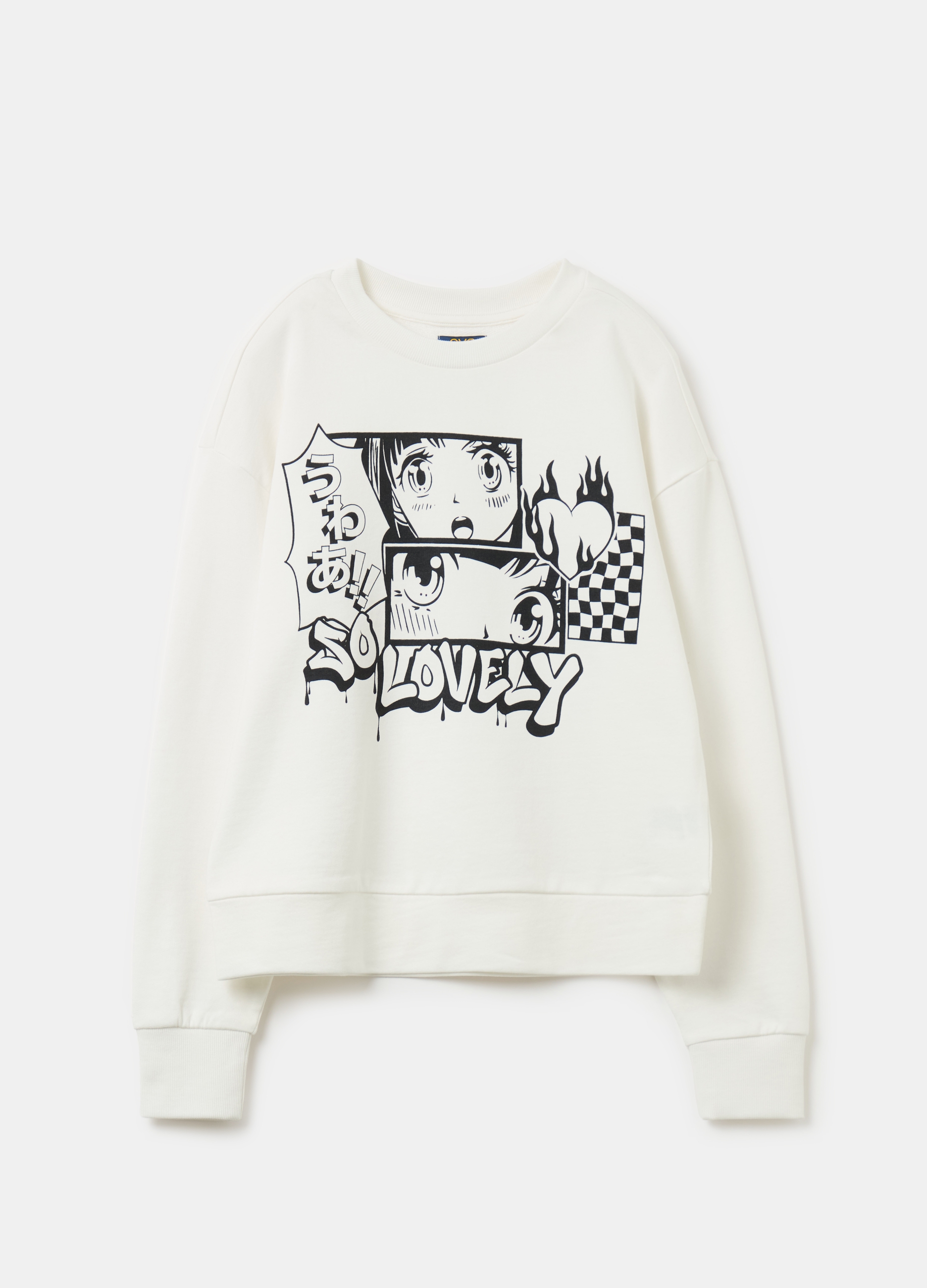 French Terry sweatshirt with print for women, perfect for autumn and winter. White, ideal for casual and comfortable look. Made with high quality materials to ensure comfort and durability. Add a touch of style to your wardrobe with this OVS IT sweatshirt.