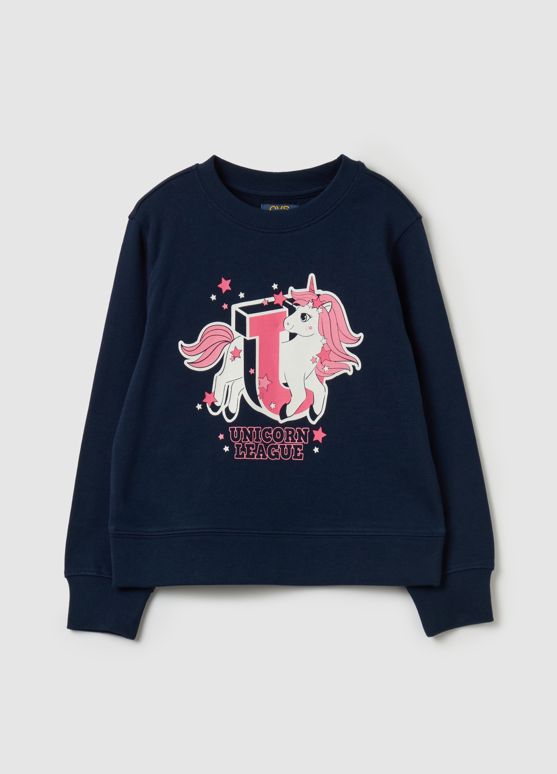 Terry french sweatshirt with print for women, with blue color, perfect for autumn/winter. Made of soft and warm fabric, ideal to complete a casual and comfortable look. The oversize cut ensures a comfortable and trendy fit. A versatile and fashionable garment to wear on every occasion.
