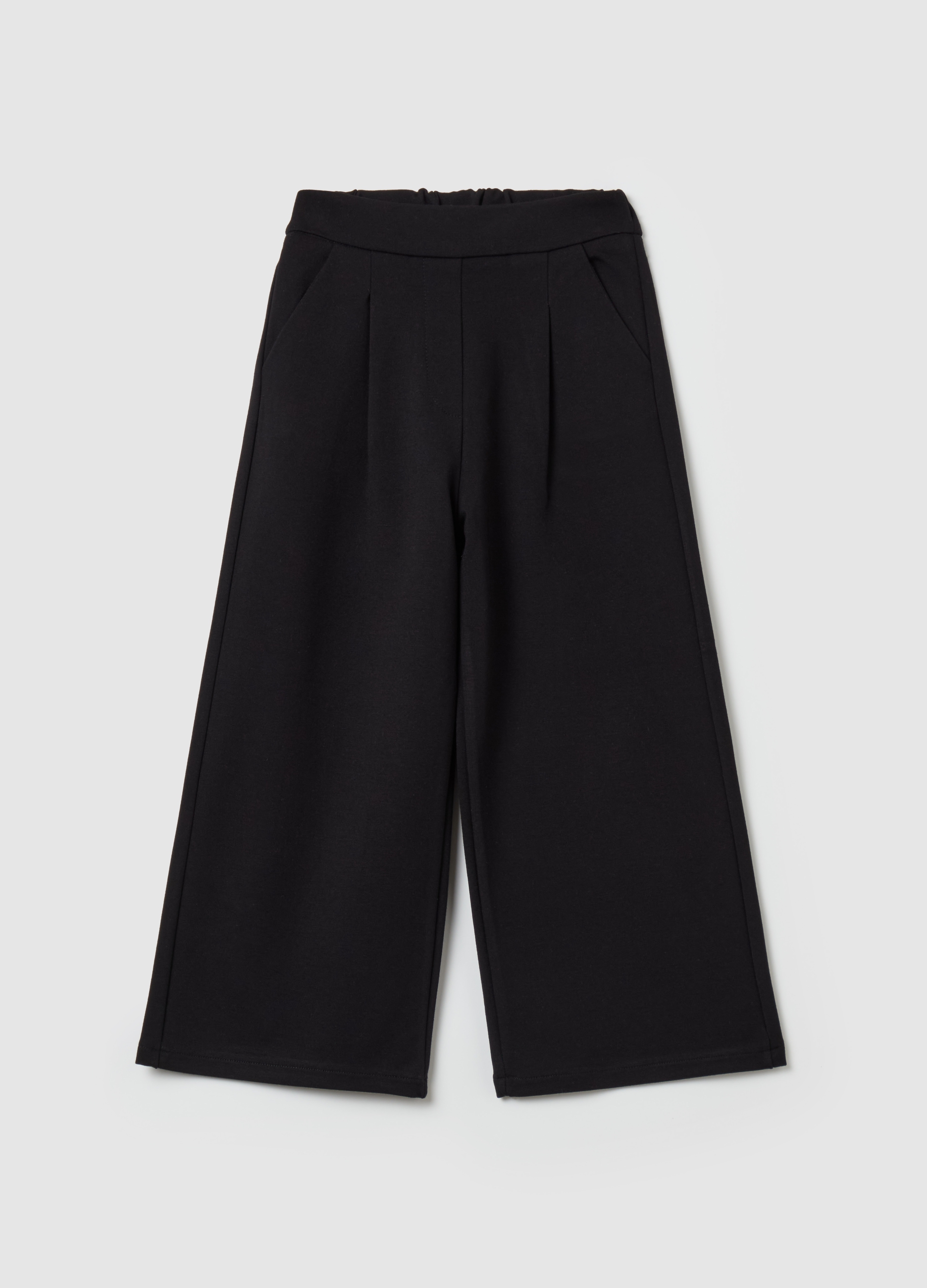 Women's wide leg pants in black elastic fabric, suitable for a casual or sporty look. Ideal for all seasons, comfortable and versatile to wear on various occasions. Regular cut and elastic waist ensure perfect fit. An essential garment in the wardrobe of every fashionable woman.