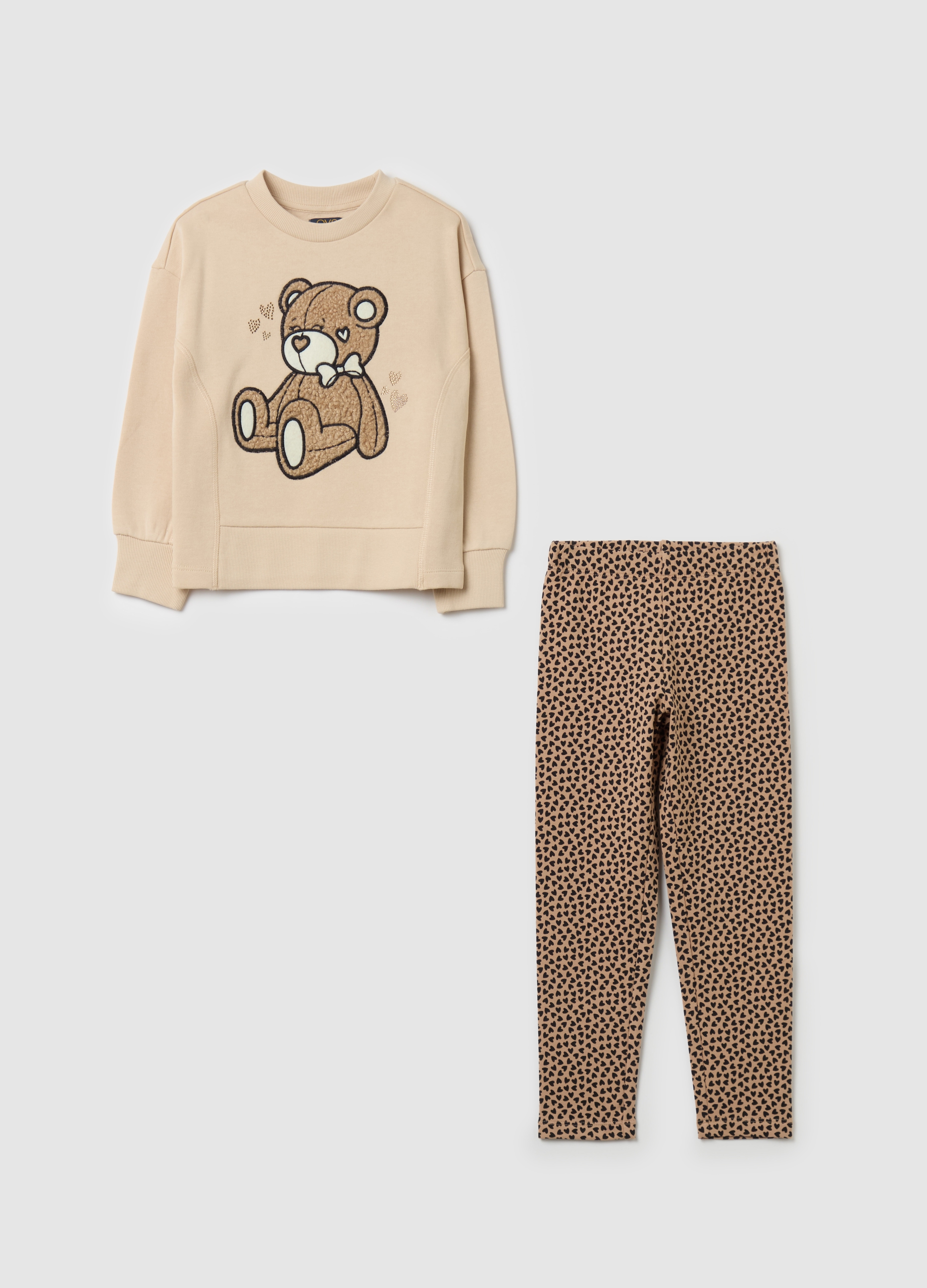 Random/sporty leggings in beige perfect for each season. Made of soft and comfortable elastic fabric, fit perfectly to the body. Detailed with an embroidery of a bear on the side, which gives a playful touch to the look. Ideal for everyday clothing or for physical activity.