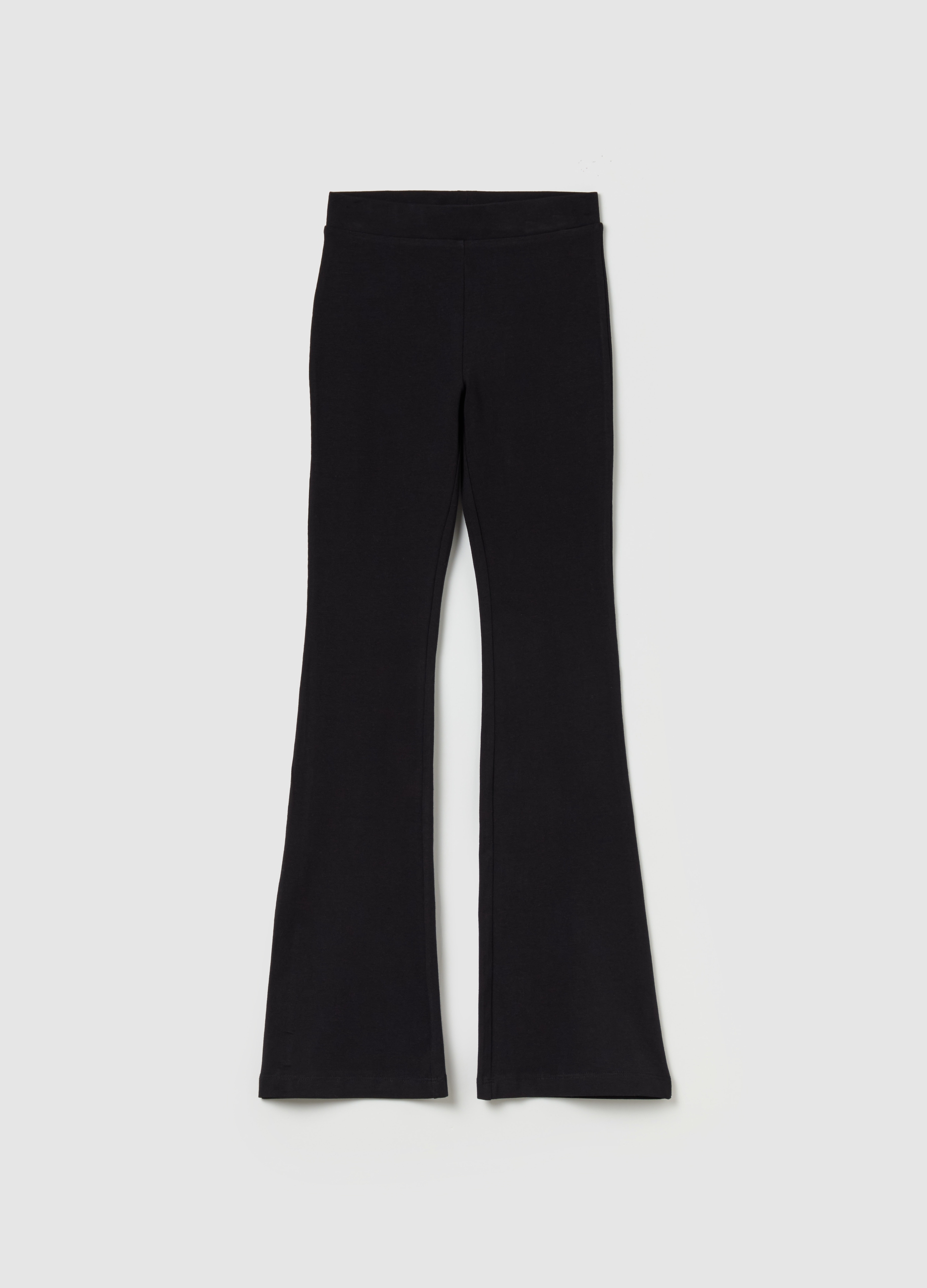 Leggings Flare Fit Woman in black color, ideal for a casual or sports look. Made of stretch fabric for optimal comfort during physical activity. Perfect for all seasons, they are a versatile garment to match t-shirts, shirts or sweatshirts. Elegant and practical, leggings are a must-have in every woman's wardrobe.