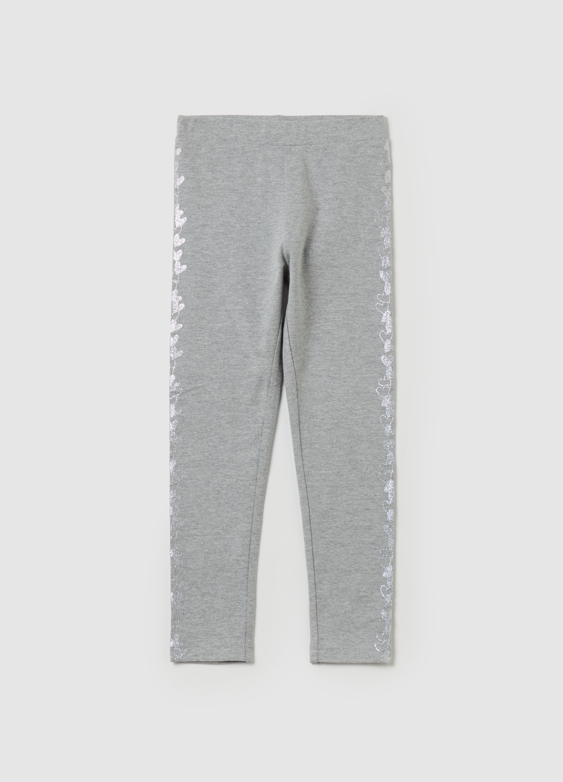 Leggings with glitter print for women, suitable for all seasons. Grey, ideal for a casual or sporty look. Made with stretch fabric to ensure comfort and freedom of movement. Available in size 34.