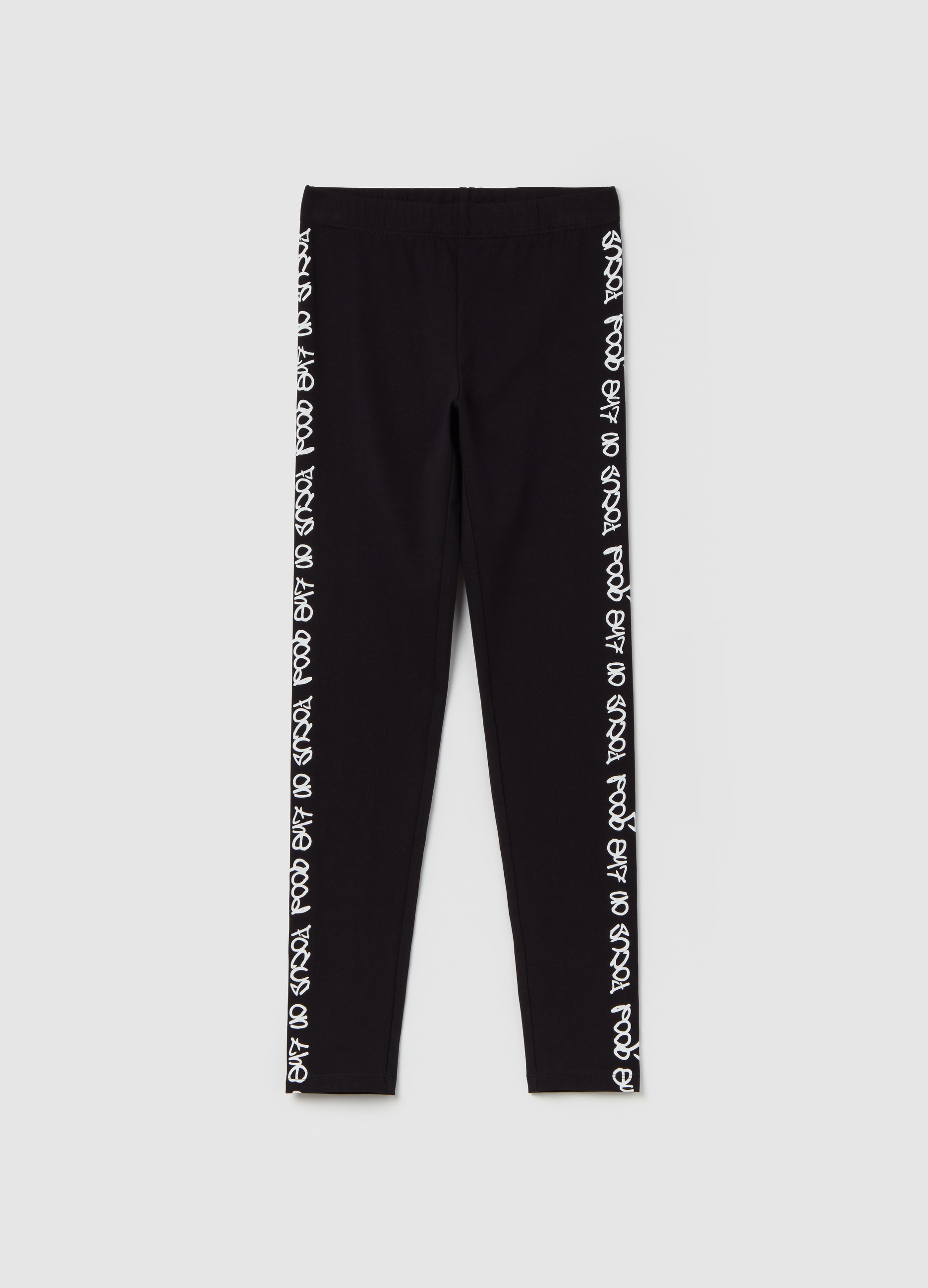 Black leggings with lettering print, ideal for a casual and sporty look every season. Made of elastic and comfortable fabric, they adapt perfectly to the shape of the body. Perfect for dynamic and fashionable outfits, to be combined with oversize t-shirts and sneakers for a trendy and comfortable look.