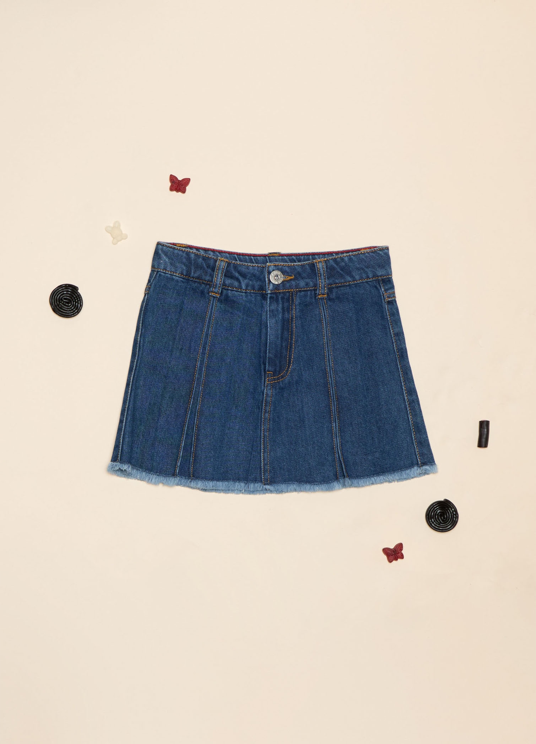 Light and comfortable denim skirt, perfect for spring/summer. Its blue color is versatile and easy to match with t-shirts and sandals for a casual and fashionable look. Made of high quality cotton blend, it is ideal for any informal occasion. Add a touch of freshness to your wardrobe with this feminine and modern cut skirt.