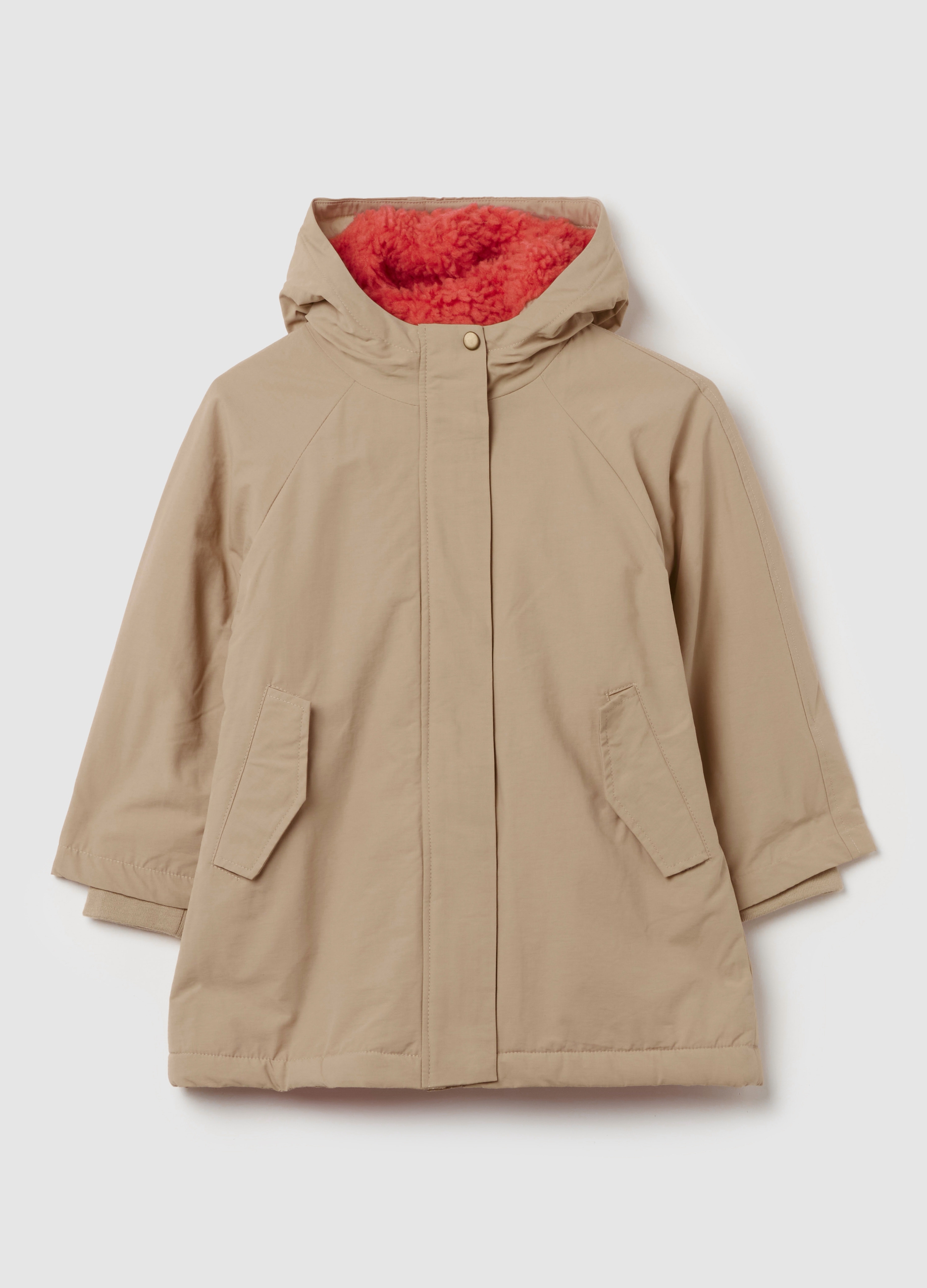 Parka with hood and sherpa interior for women, perfect for facing autumn and winter with style and comfort. The beige color makes it versatile and easy to match any kind of outfit. Made with quality materials, this parka guarantees warmth and protection from atmospheric agents. An essential garment to face colder days with a touch of elegance.