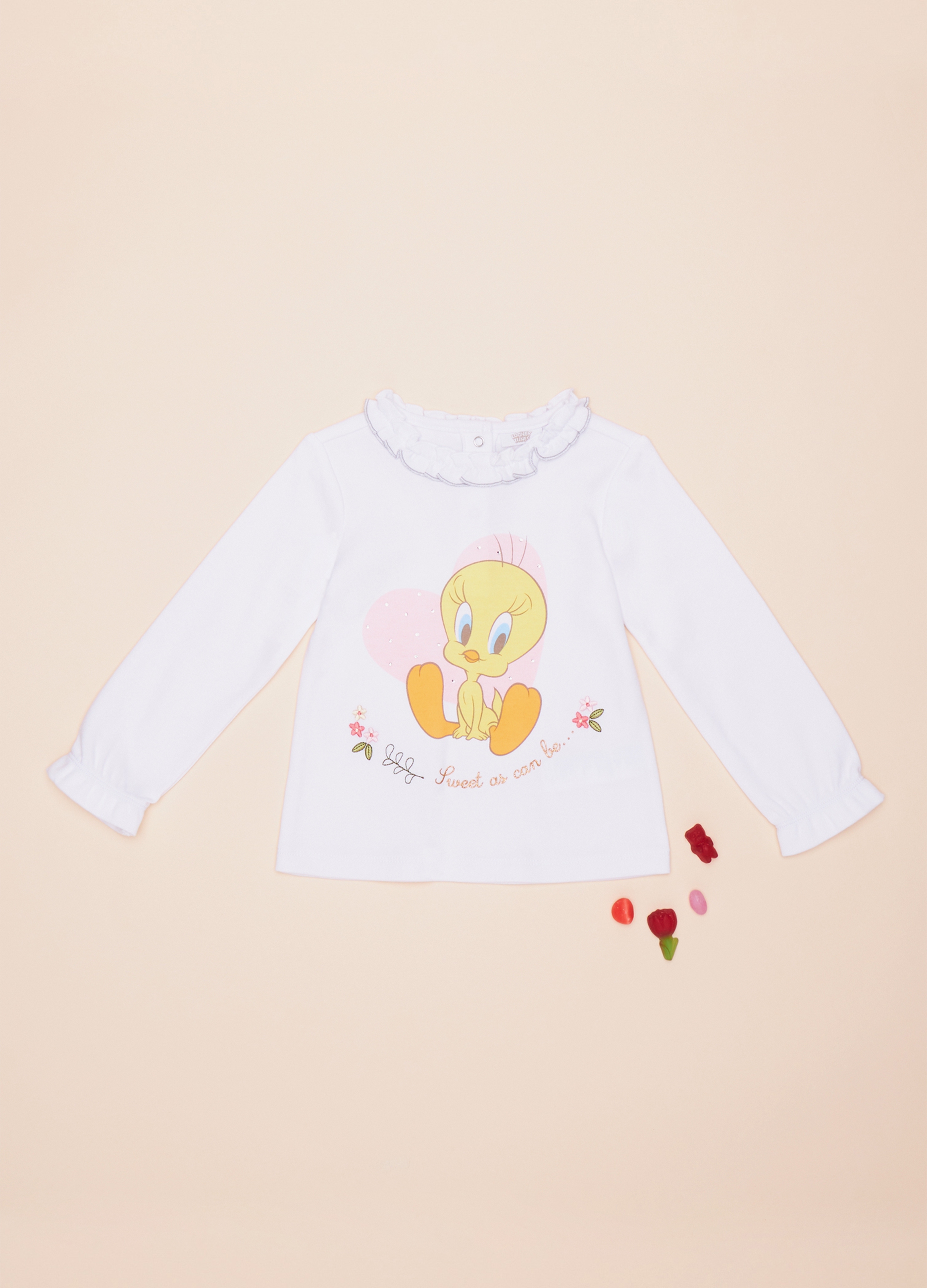 Pure cotton t-shirt with rouches, ideal for women and suitable for all seasons. The white color makes it easy to match any look. Available in size 12, it is perfect for a casual and comfortable look. A versatile and trendy garment for every occasion.