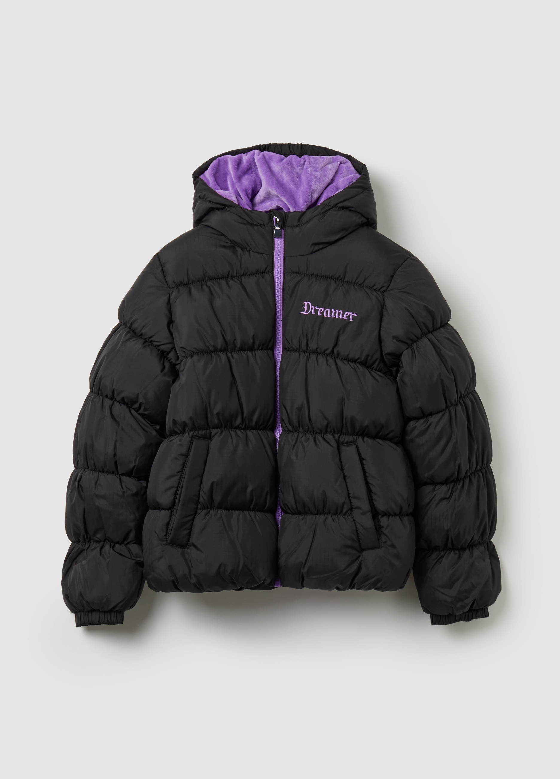 Quilted jacket with hood and embroidery for woman, perfect for facing the winter with style and comfort. The multicolor color gives a lively touch to your look, while the casual/ stylish cut allows you to be always fashionable. Made with high quality materials, this OVS garment will keep you warm on cold days without sacrificing style. Ideal for a versatile and fashion look during the winter season.