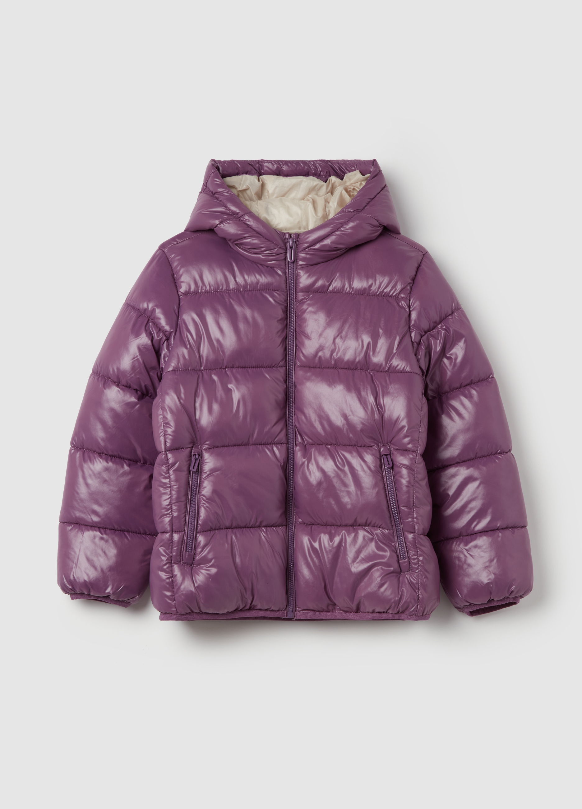 Quilted jacket with hood for women, perfect for winter. The purple color makes it elegant and versatile, suitable for casual and elegant outfits. Made of warm and comfortable material, it will keep you warm during the coldest days. A must-have garment to face the winter season with style.