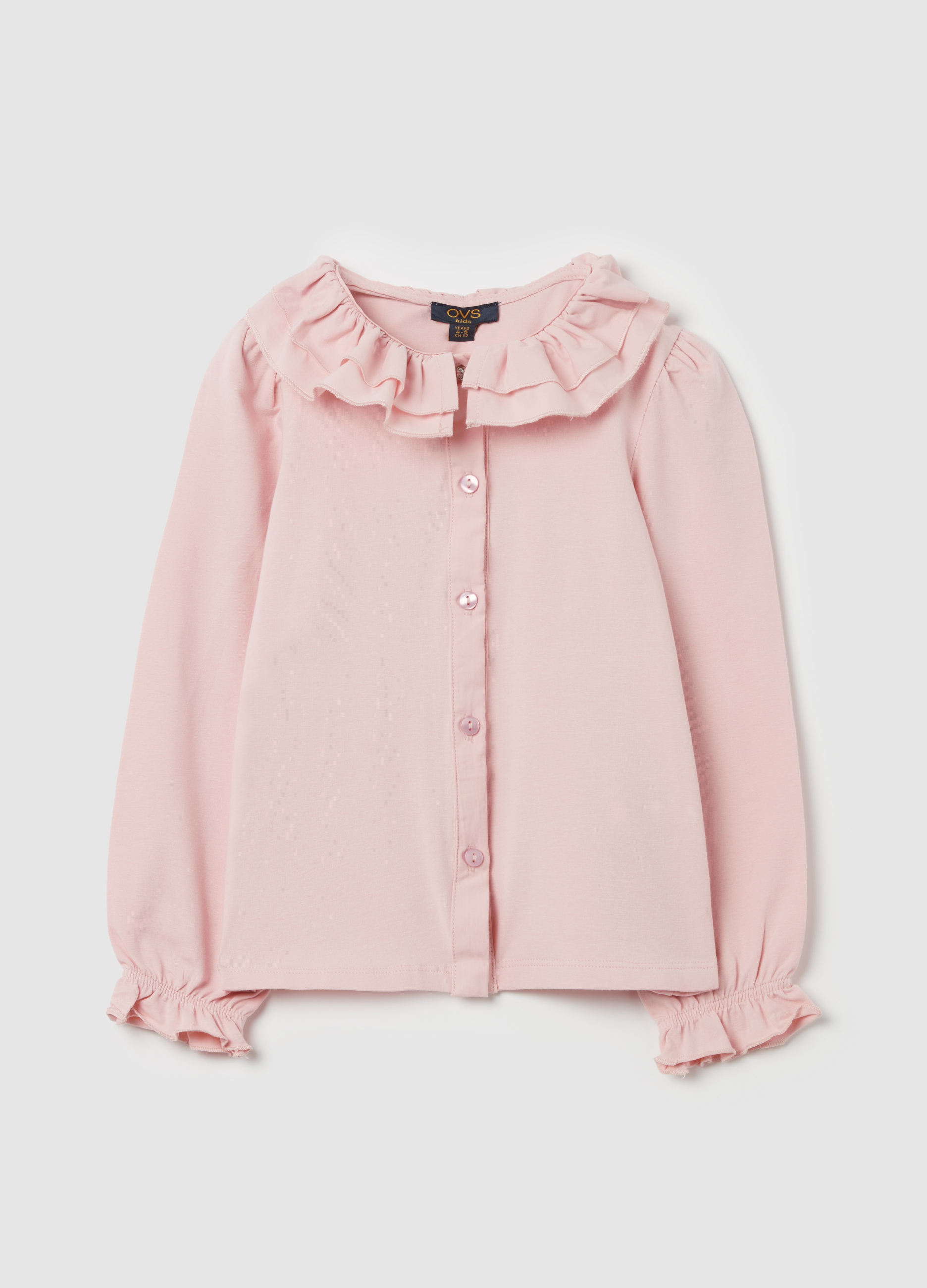 OVS Shirt with Flower and Rouches Pink Woman Size 3 4