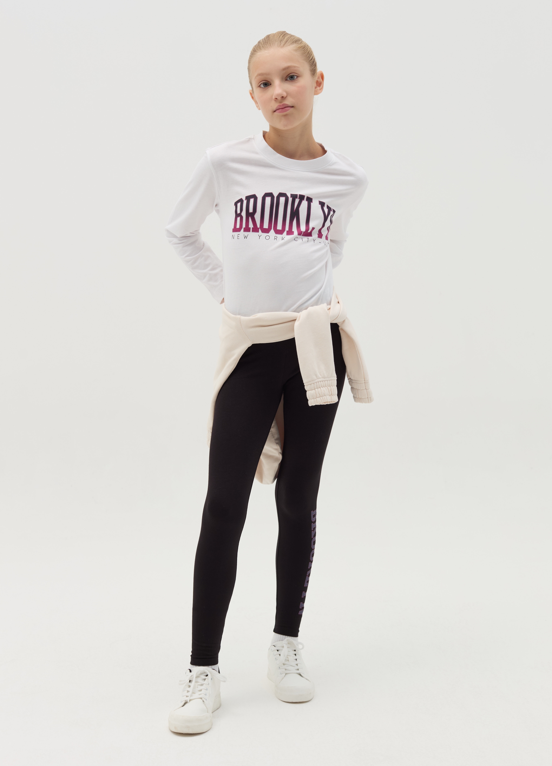 Stretch cotton leggings with print for women, suitable for all seasons. Black, perfect for a casual or sports look. Comfortable and versatile, ideal for everyday outfit. An essential garment in every woman's wardrobe.