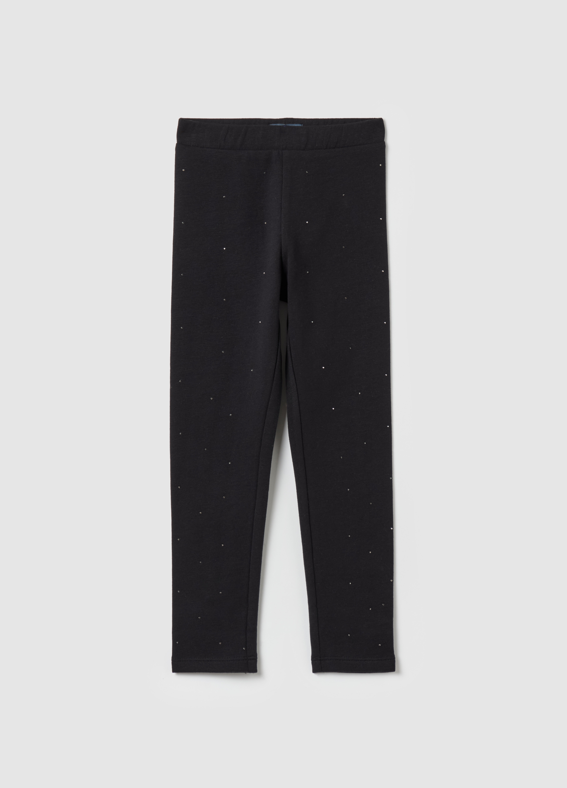 Black stretch cotton leggings with reinforced seams, perfect for a casual or sporty look. Made with breathable fabric, they are comfortable to wear in any season. The stretch fabric ensures a perfect fit for each size, while the black color is easy to match with any garment. A versatile and practical garment to have in your wardrobe.