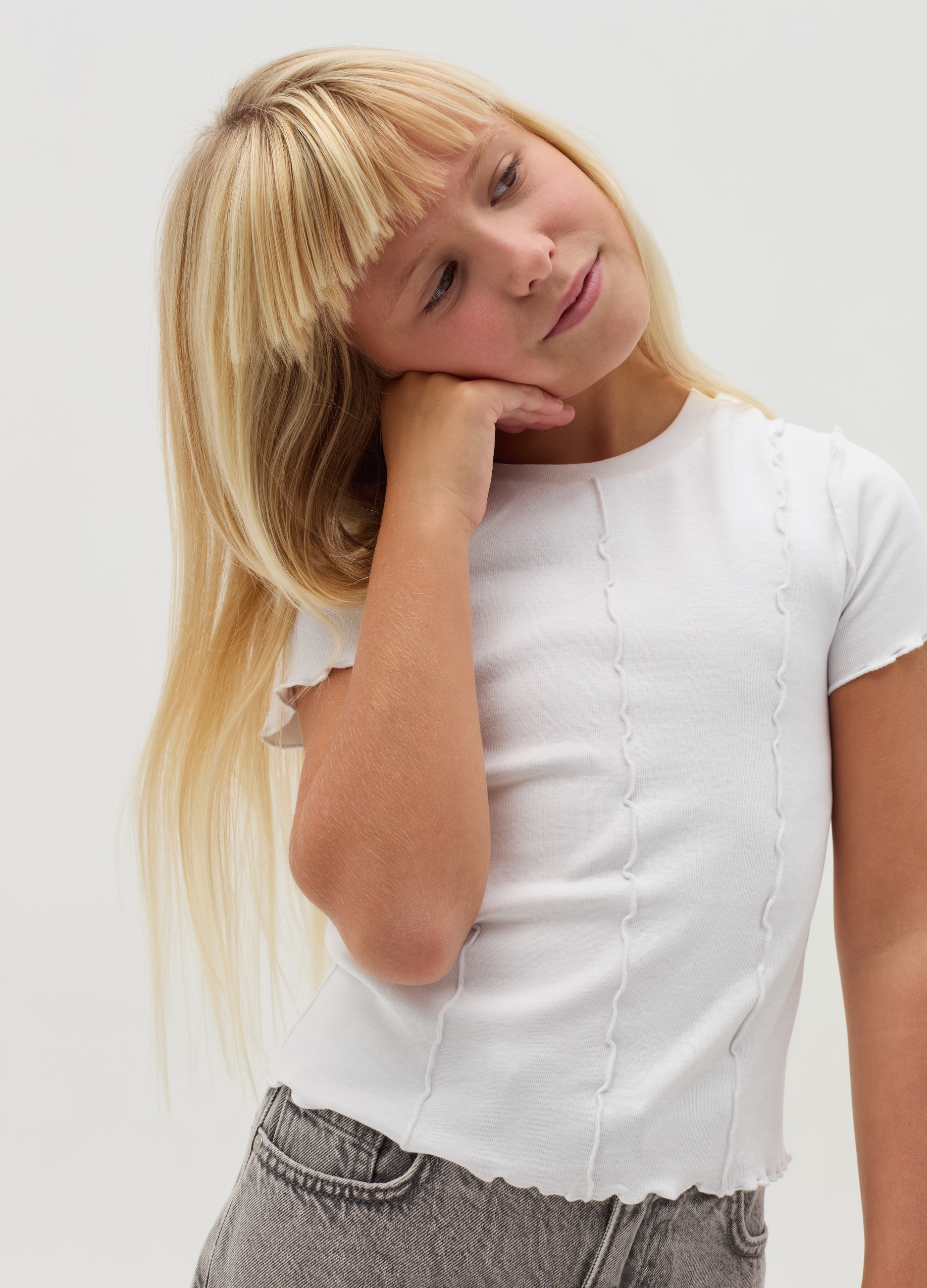 T shirt in stretch cotton with applications for women, white. Perfect for a casual and comfortable look in all seasons. Made with high quality materials to ensure optimal comfort. A versatile and fashionable garment to add to your wardrobe.