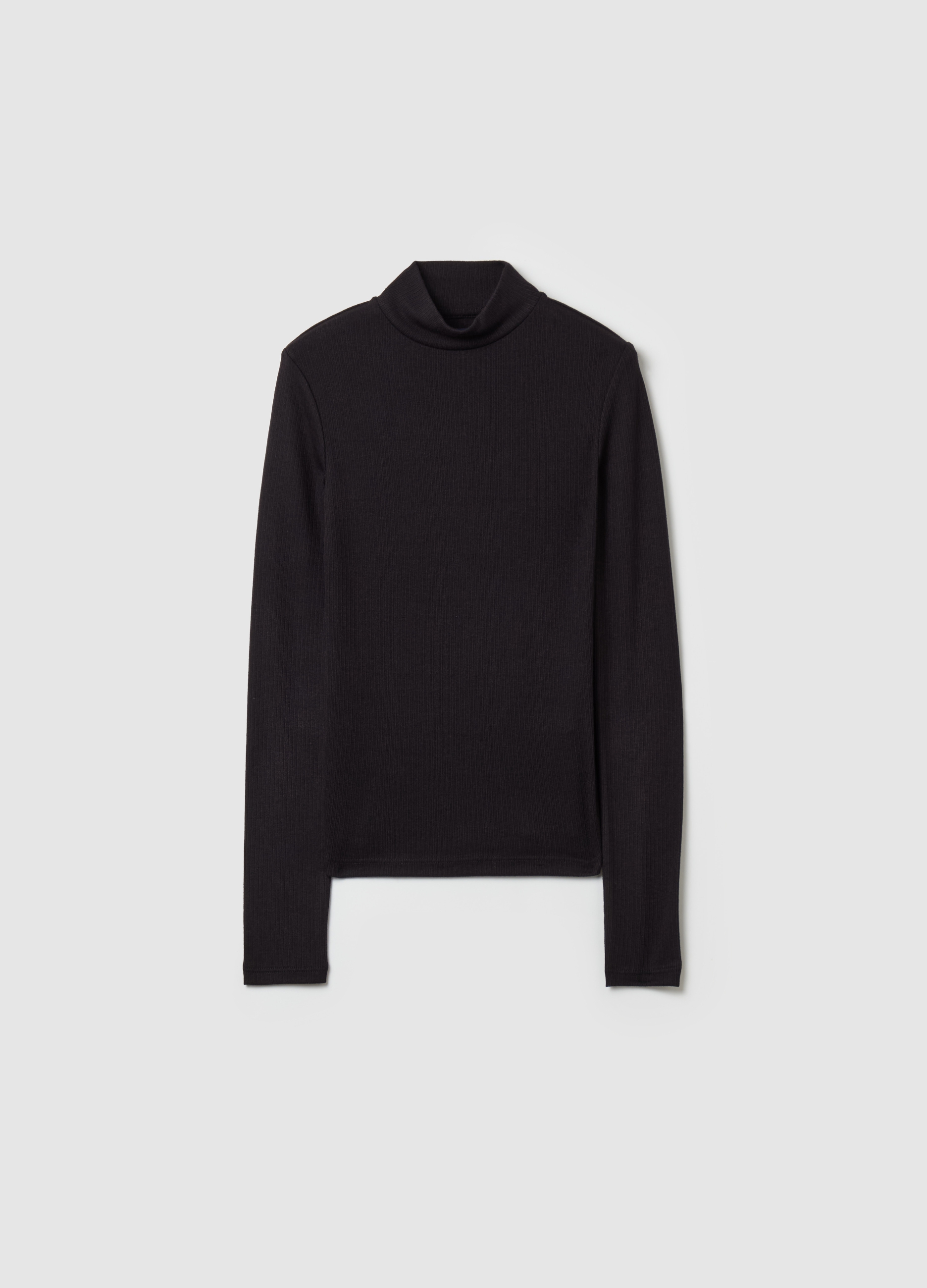 Women's casual T-shirt OVS in black, perfect for all seasons. The A Costine Mock Neck model has a simple and versatile design, ideal to match jeans or skirts. Made of soft fabric, it will be comfortable and fashionable on every occasion.