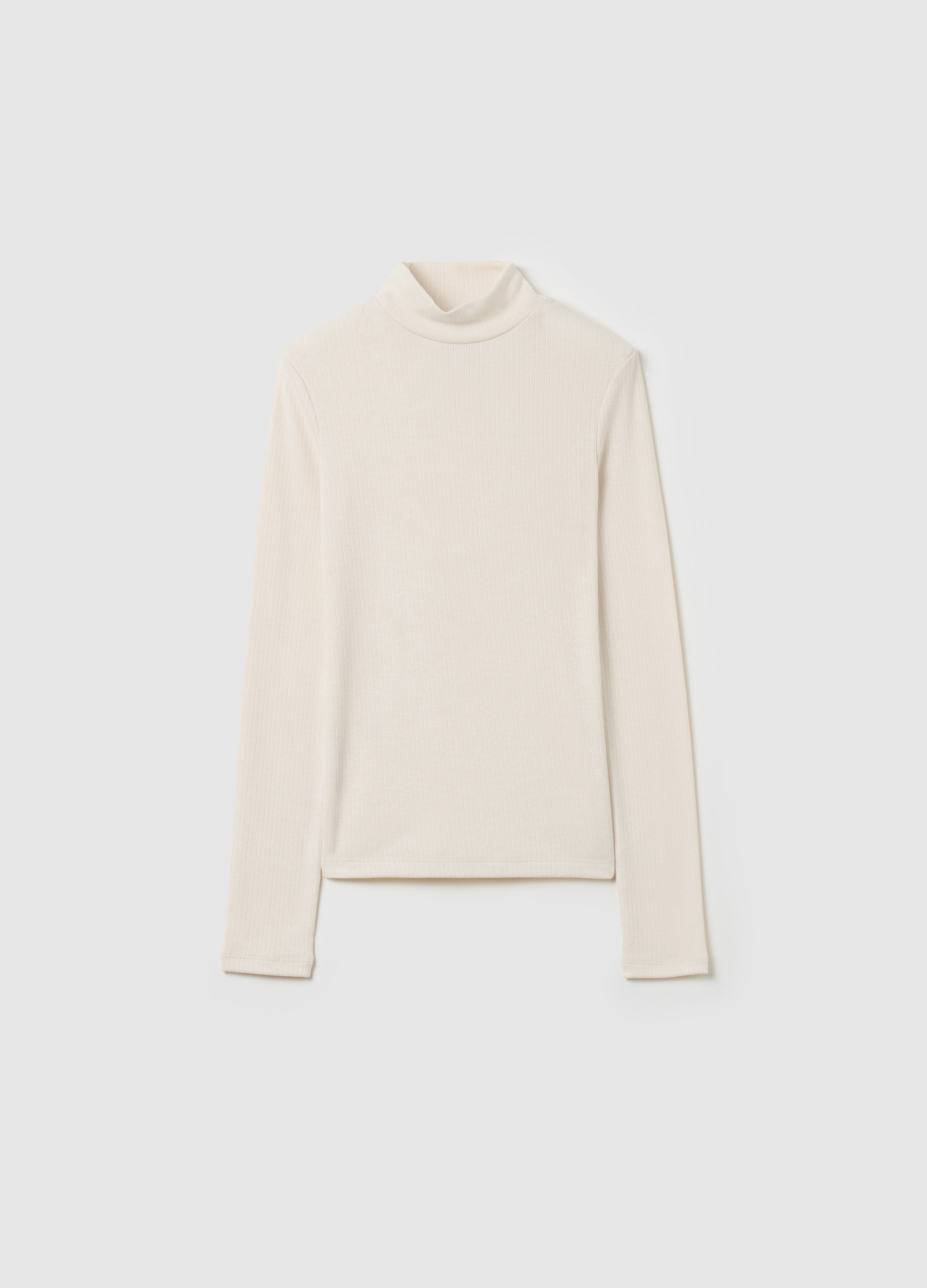 Ribbed T-shirt with high neck for woman, ideal for every season. This white shirt adds a casual touch to your look. Made of soft and comfortable fabric, it will be perfect for every occasion. Add a touch of freshness to your wardrobe with this OVS T-shirt.