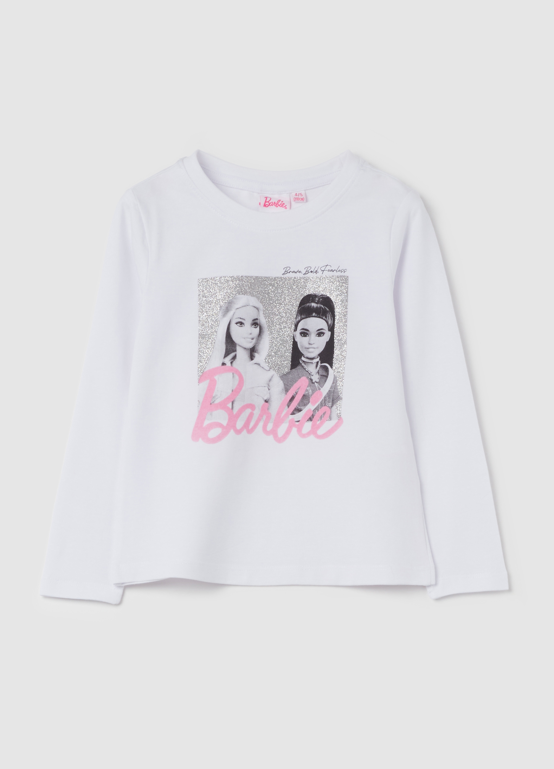 Women's casual t-shirt, perfect for every season. White color, size 7 8. Print Barbie. Long sleeves for a comfortable and fashionable look.