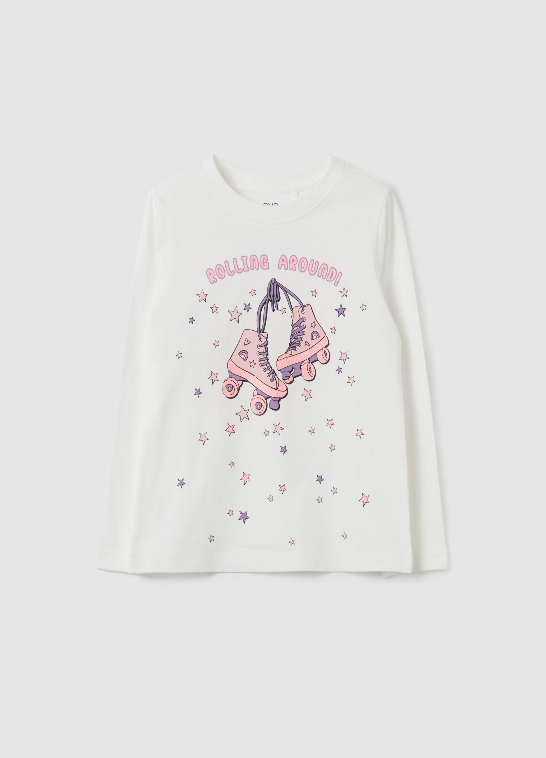 Women's casual t-shirt, suitable for all seasons. Made of soft white fabric, it has an original print in the center. Long sleeves make this garment comfortable and versatile for casual and informal look. Perfect to match jeans or leggings for an easy-chic look.