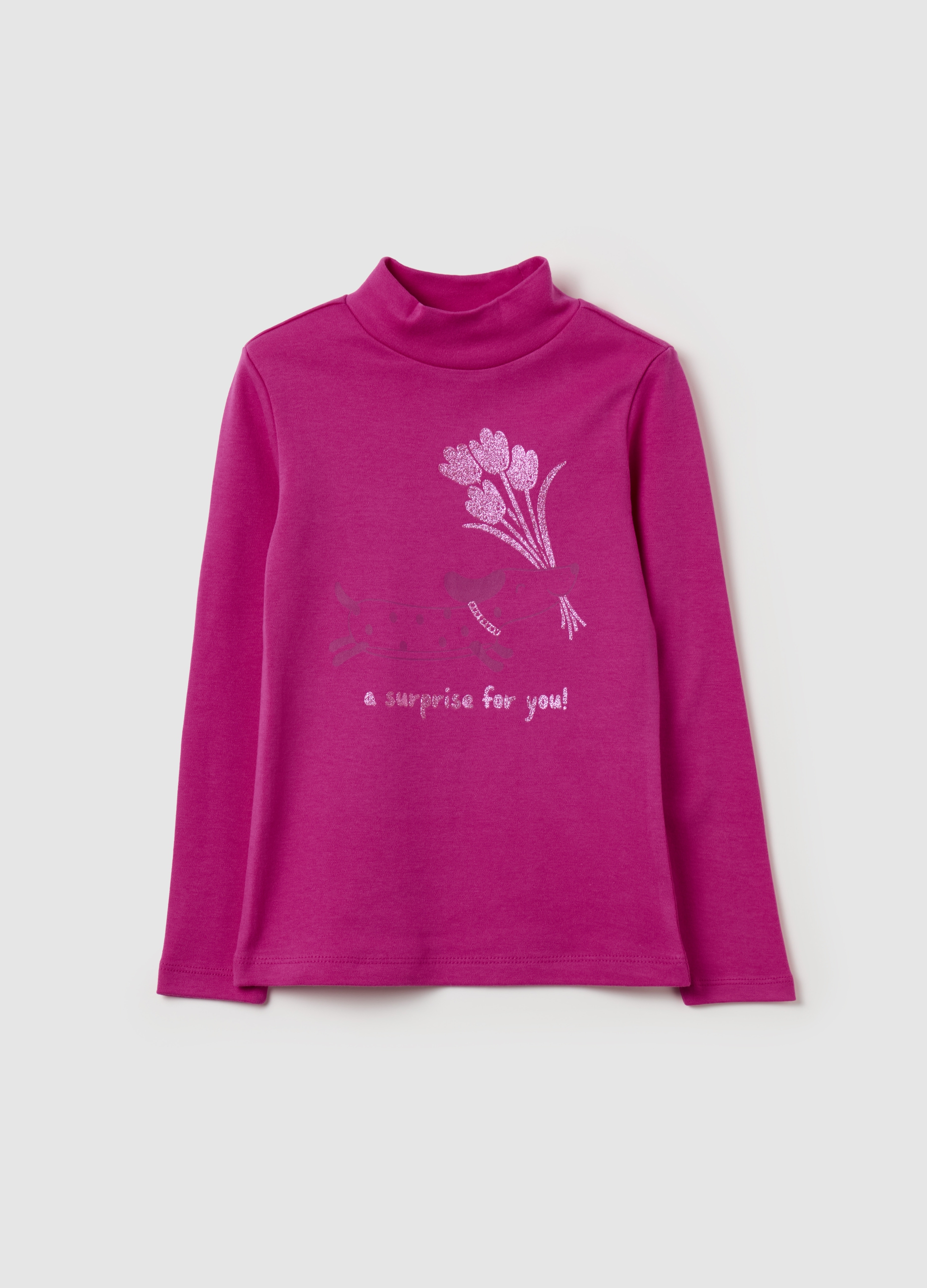 Pink t-shirt with long sleeves and floral print, perfect for a casual and cool look in all seasons. Made of high quality soft fabric, this OVS t-shirt features a high neck for an extra touch of elegance. Ideal to match jeans or trousers for a comfortable and fashionable outfit.