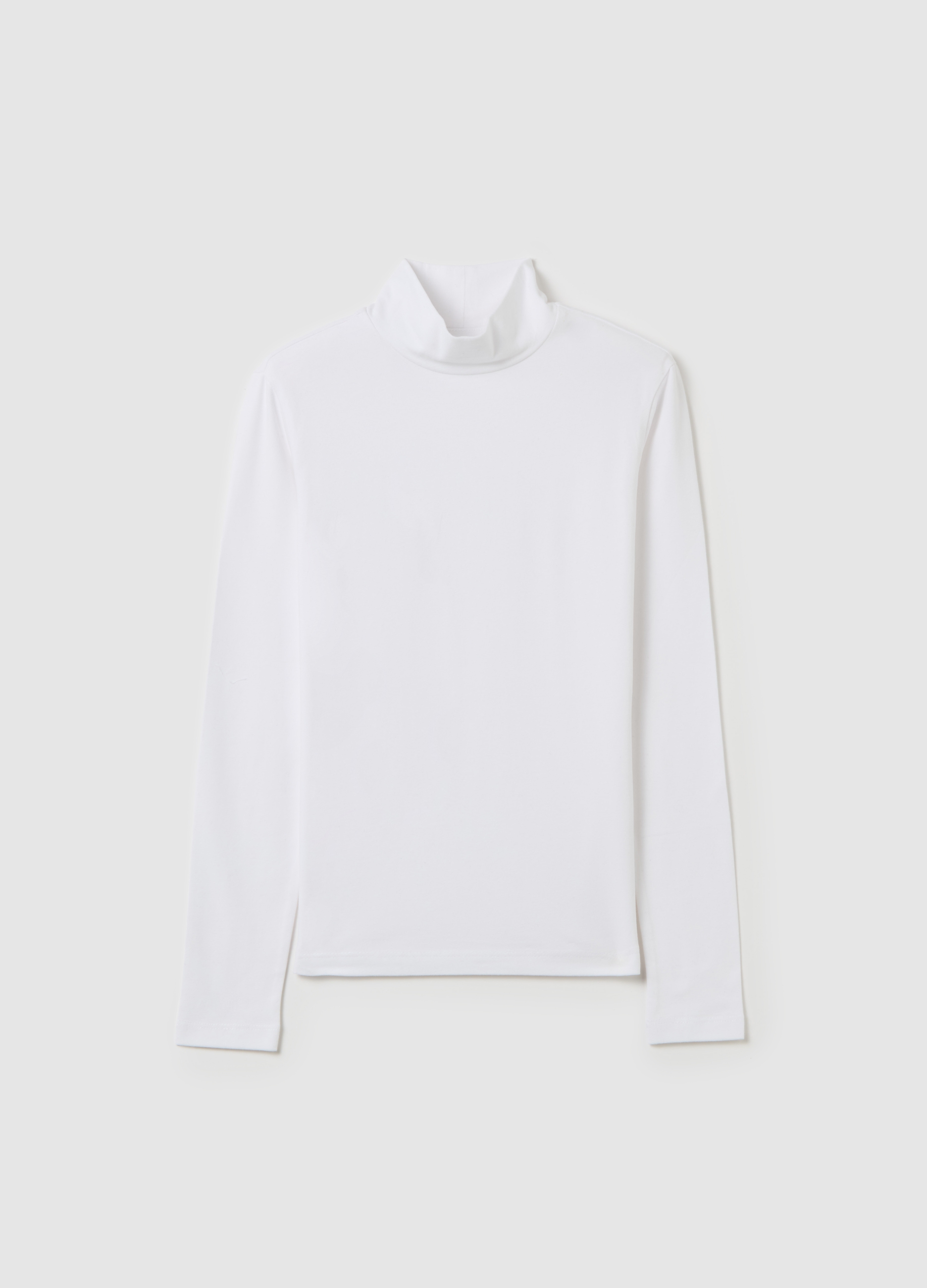 The Mock Neck T-shirt with long sleeves for white women is perfect for every season. Made of light and soft fabric, it is ideal for a casual and comfortable look. The upper neck adds a touch of elegance, while the regular fit ensures maximum comfort. A versatile and timeless garment, perfect to match jeans or leggings for an easy-chic outfit.