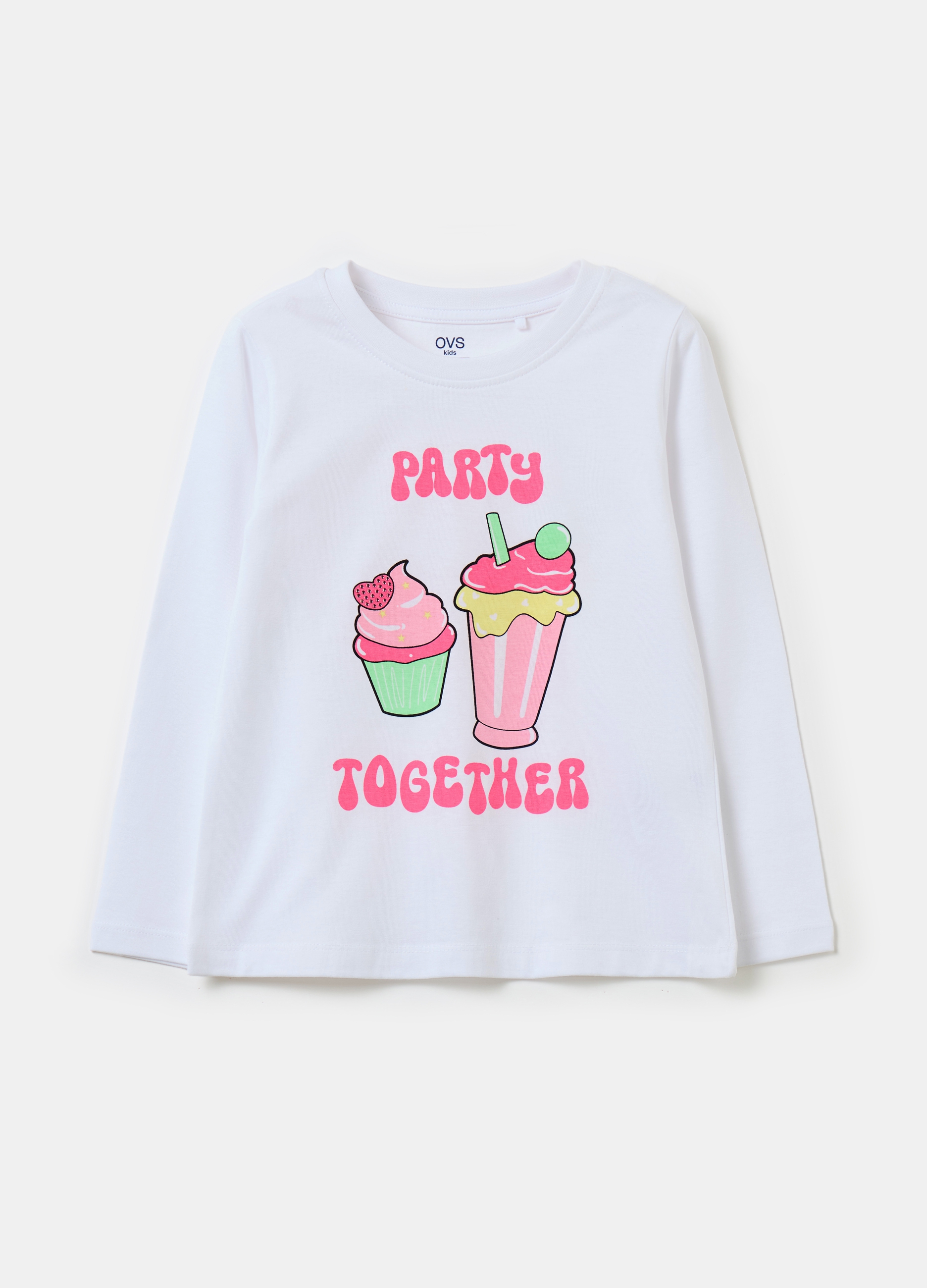T-shirt long sleeves in cotton with print for women. White, suitable for all seasons. Made with high quality fabric and casual design, perfect for a comfortable and fashionable look. Available in sizes 6 and 7.