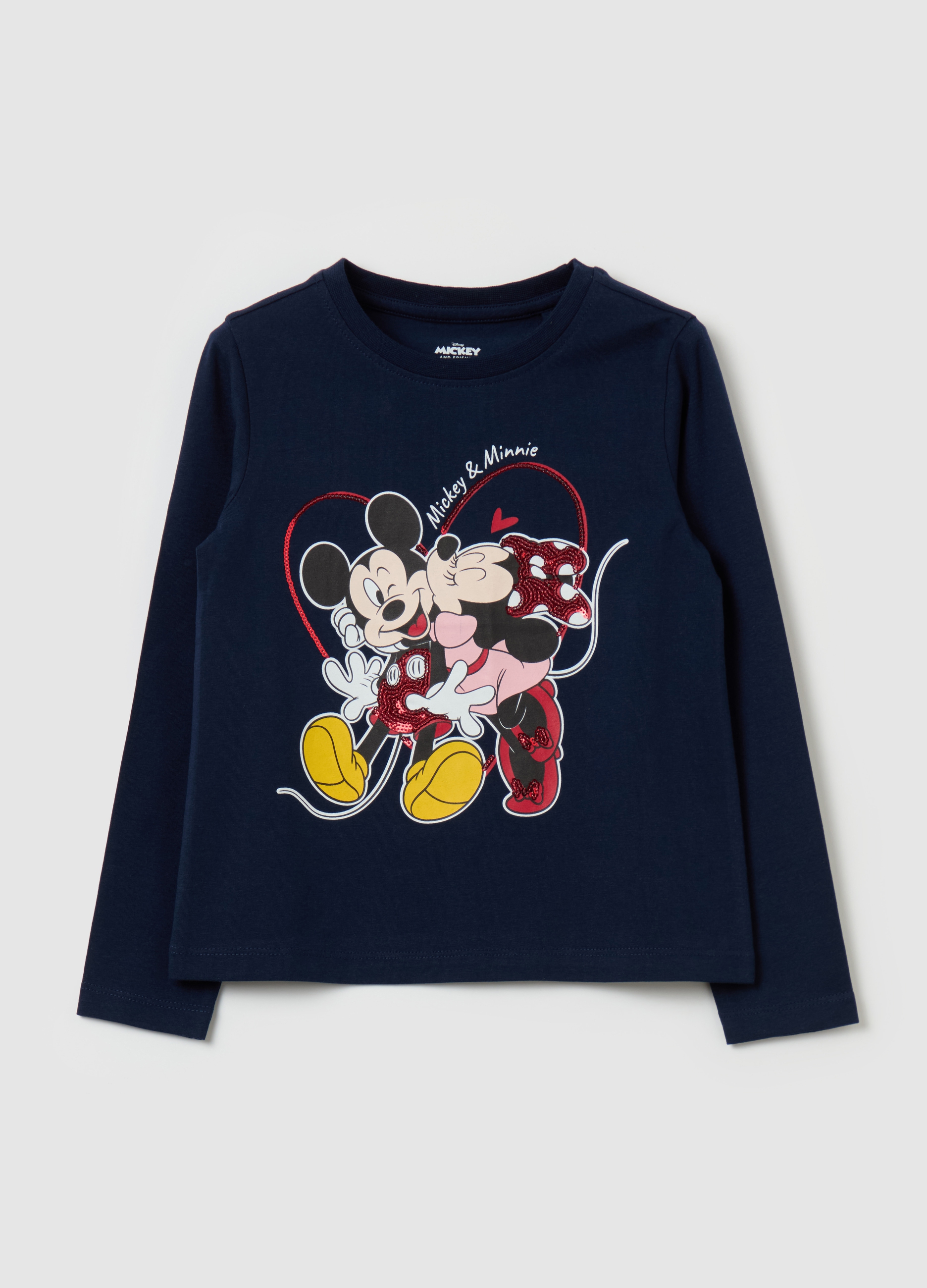 Women's casual t-shirt, ideal for all seasons, blue. With Minnie and Mickey Mouse print, this shirt is perfect for a cheerful and original look. Made with high quality materials, it is comfortable to wear on any occasion. Add a touch of fantasy to your wardrobe with this OVS shirt.