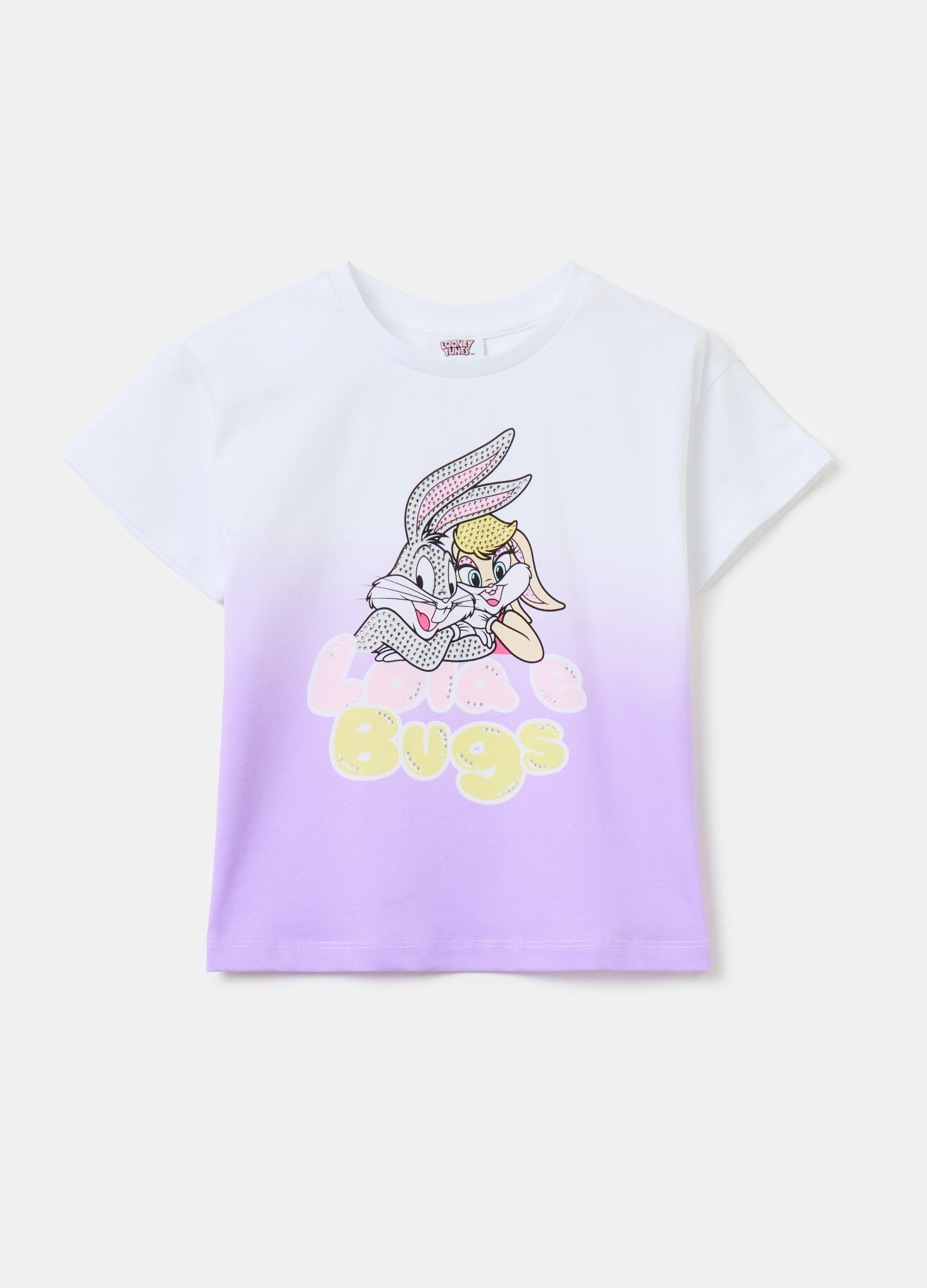 The White Women's T-shirt with Rhinestones and Bugs Bunny and Lola print is perfect for a casual look in all seasons. The fun and feminine design makes it ideal for a trendy and original outfit. Made with high quality materials, it guarantees comfort and style on every occasion. Complete your wardrobe with this unique design OVS T-shirt.
