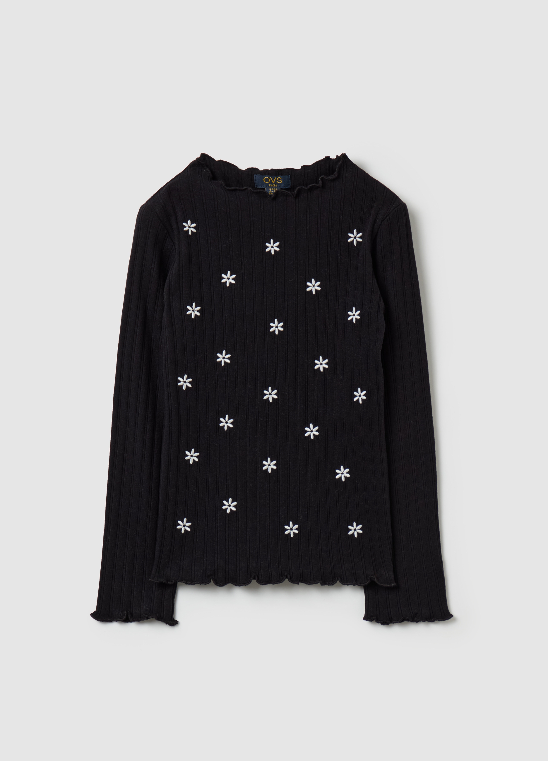 OVS T Shirts With Embroidery Flowers Black