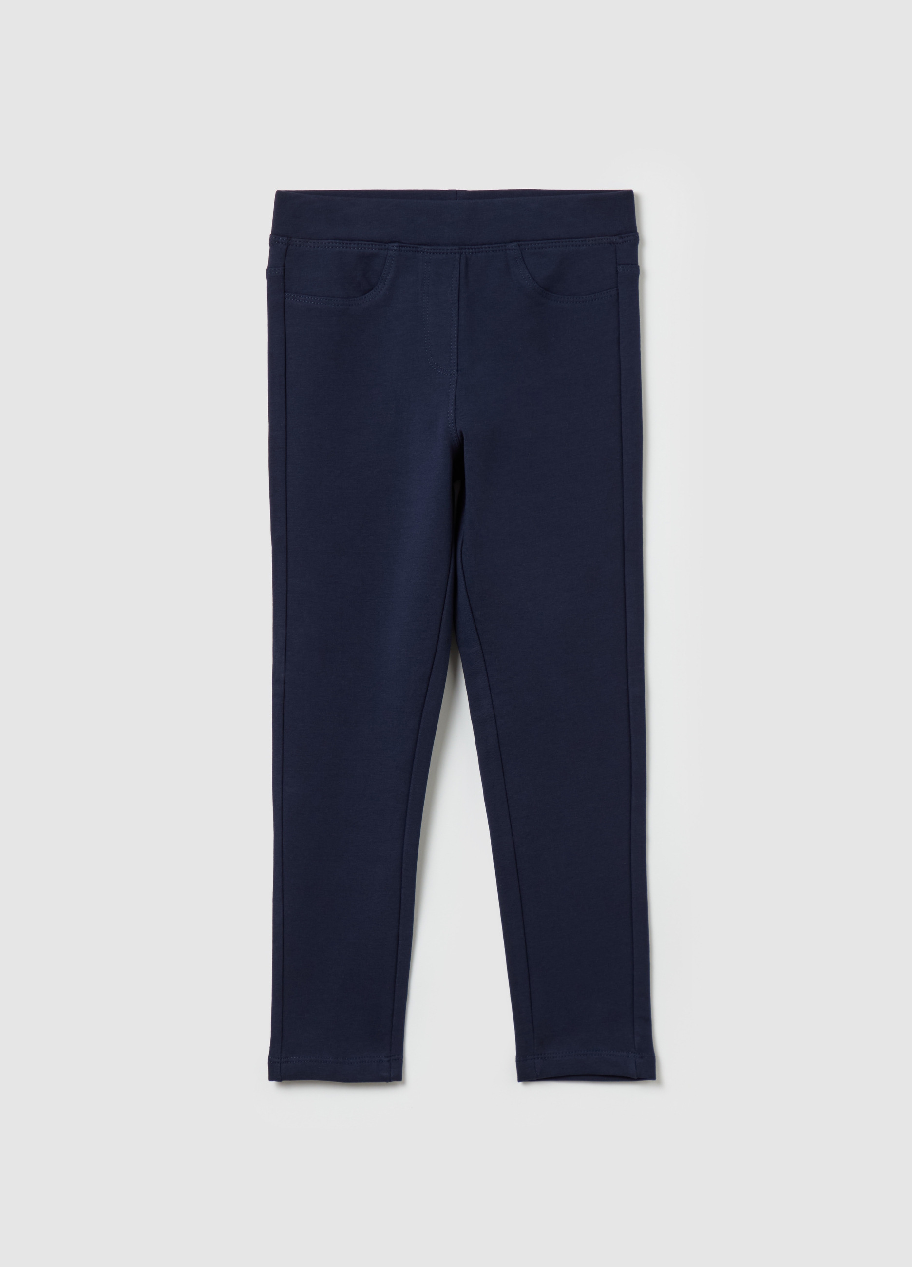 High waist treggings and tight cut for blue women made of soft organic cotton. Ideal for a casual and sporty look, perfect in any season thanks to their versatility. Comfortable and practical to wear for an informal occasion or light physical activity.