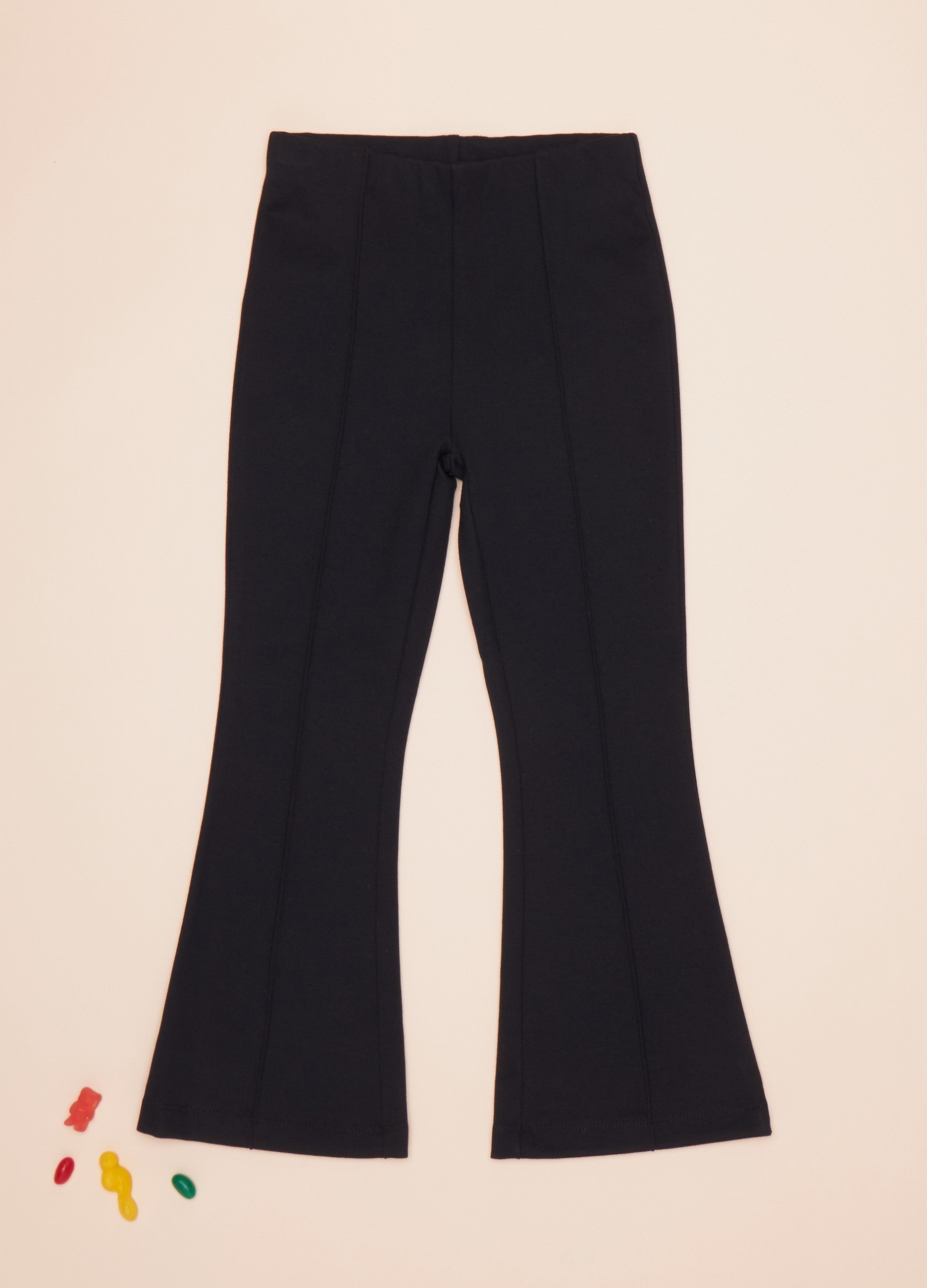 Casual/sporty Leggins from the soft line, suitable for every season. The medium-heavy black fabric fits perfectly to the body, ensuring comfort and freedom of movement. The flare fit model and size 4 give a versatile and fashionable look. Ideal for a sporty look but treated on every occasion.