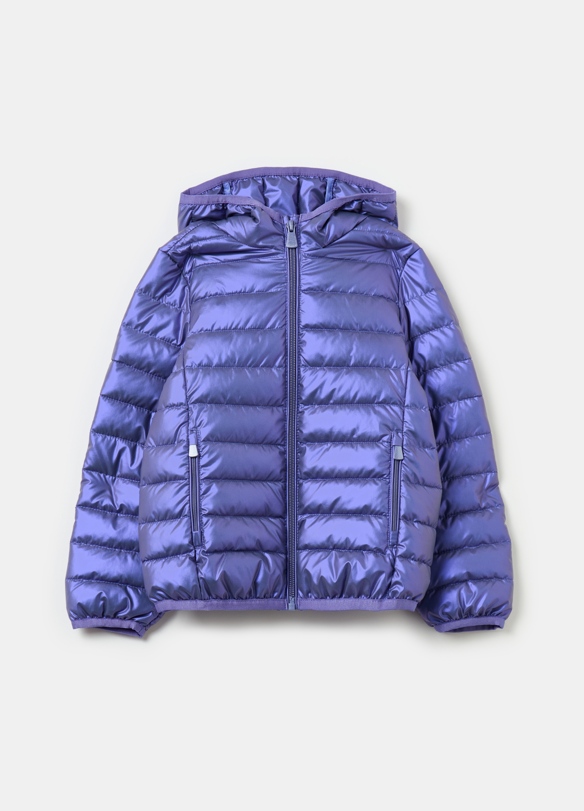 The Ultralight Down Jacket with Women's Hood 45 colour purple is perfect for autumn/winter season. Made of lightweight and durable fabric, it will keep you warm with style and comfort. The garment has a zip closure and practical side pockets. Ideal to complete your casual look on cool and rainy days.