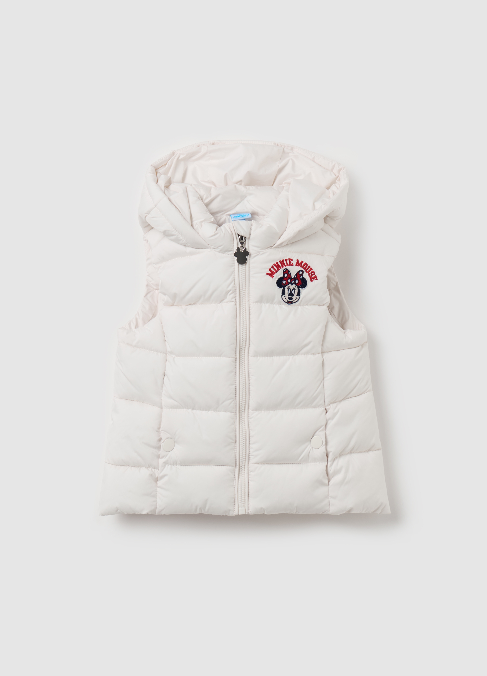 Minnie hooded vest and patch, suitable for spring and autumn. White, ideal for a casual and elegant look. Made of light and comfortable material for every occasion. A versatile and fashionable garment to add to your wardrobe.