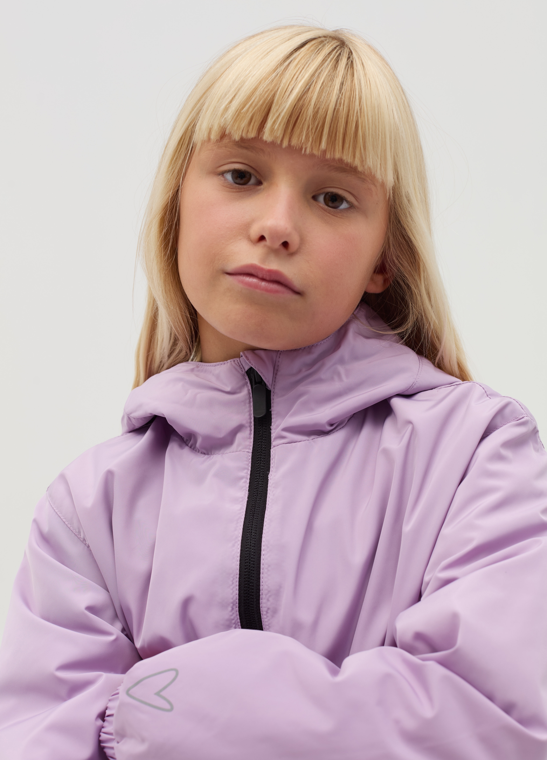 Women's casual purple jacket, suitable for autumn/winter season. Made of waterproof fabric, with hood and zip closure. Perfect for facing cold and rainy days with style and comfort. Available in size 14-15.