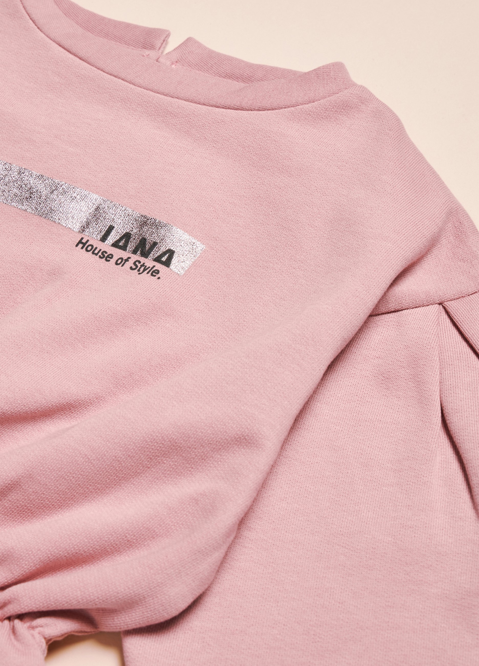 Women's pure cotton sweatshirt, casual model, ideal for autumn/winter. Pink, perfect for a trendy and comfortable look. The garment has a simple but fashionable design, suitable for leisure and outdoor days. A must have to complete your wardrobe in cold season.