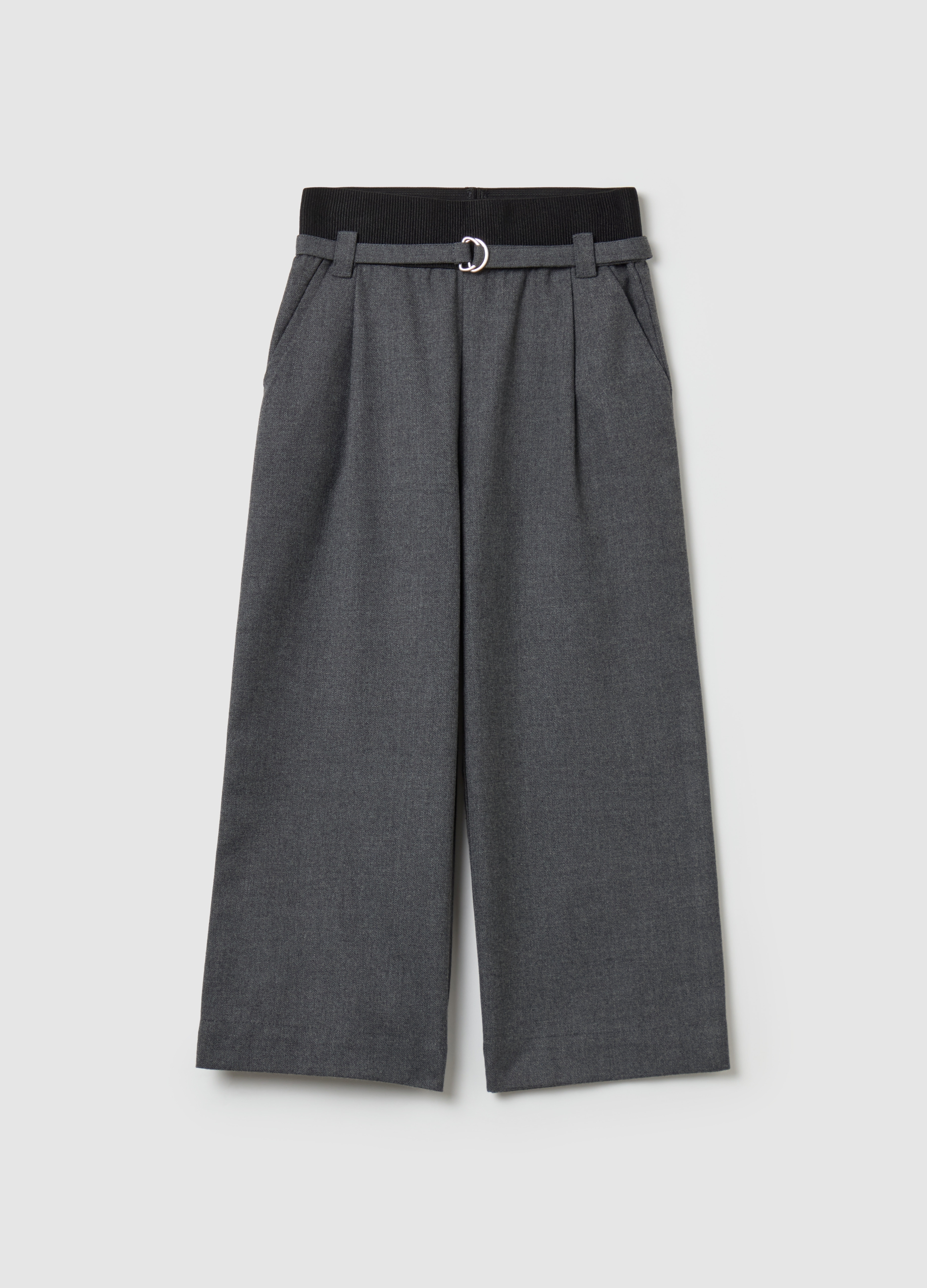 Wide leg butt trousers with belt for women in grey color, perfect for a casual or sporty look. Made of lightweight and breathable fabric, ideal for every season of the year. Comfortable to wear and easy to match with different clothing. A versatile and trendy garment, suitable for any occasion.