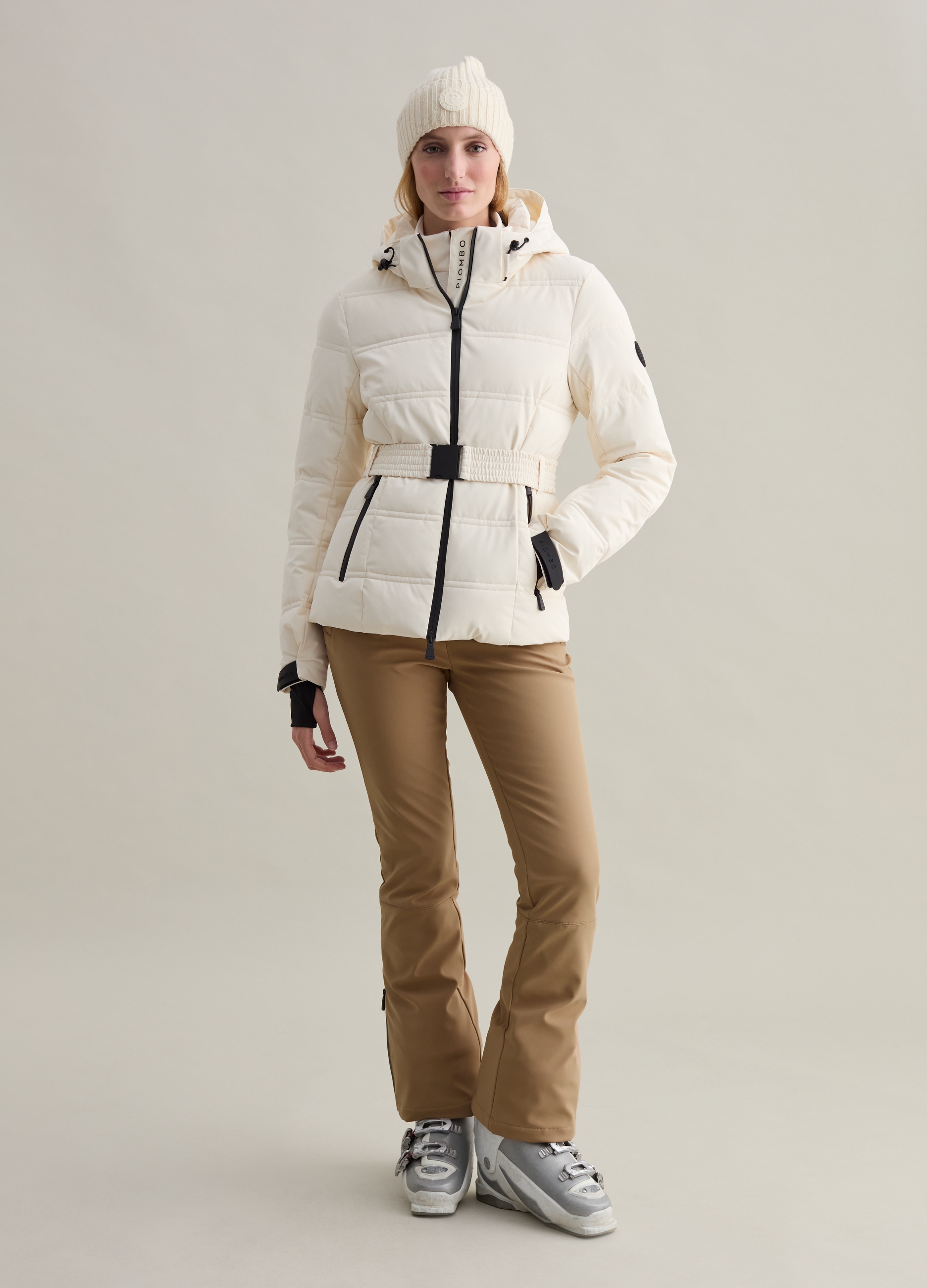 PIOMBO Quilted Down Jacket With Women's Belt