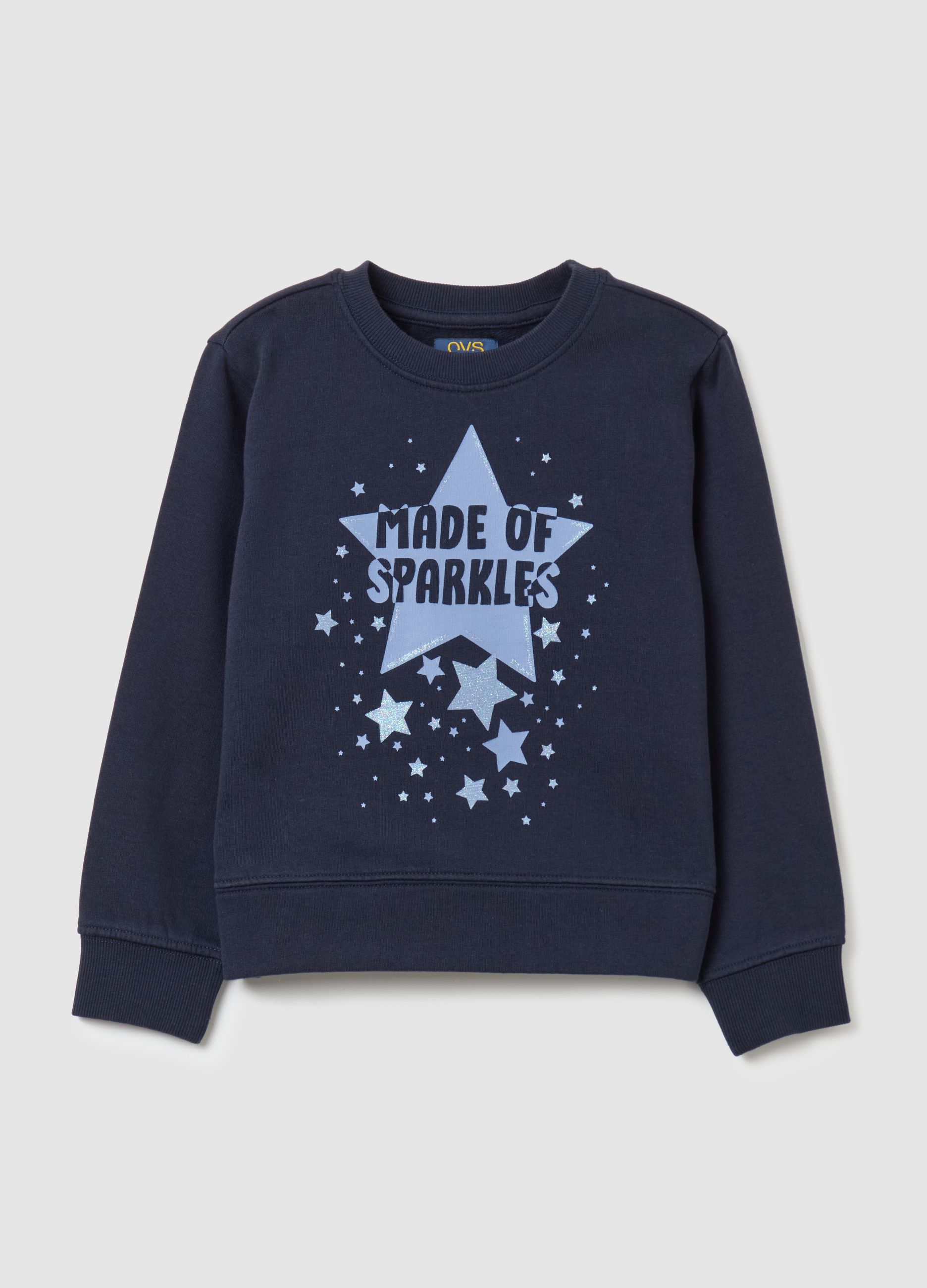 Crew neck sweatshirt with glitter print for women, ideal for autumn and winter. The blue color makes it suitable for any outfit. Made of soft and comfortable fabric, perfect for a casual and fashionable look. A versatile and trendy garment that cannot be missed in your wardrobe.