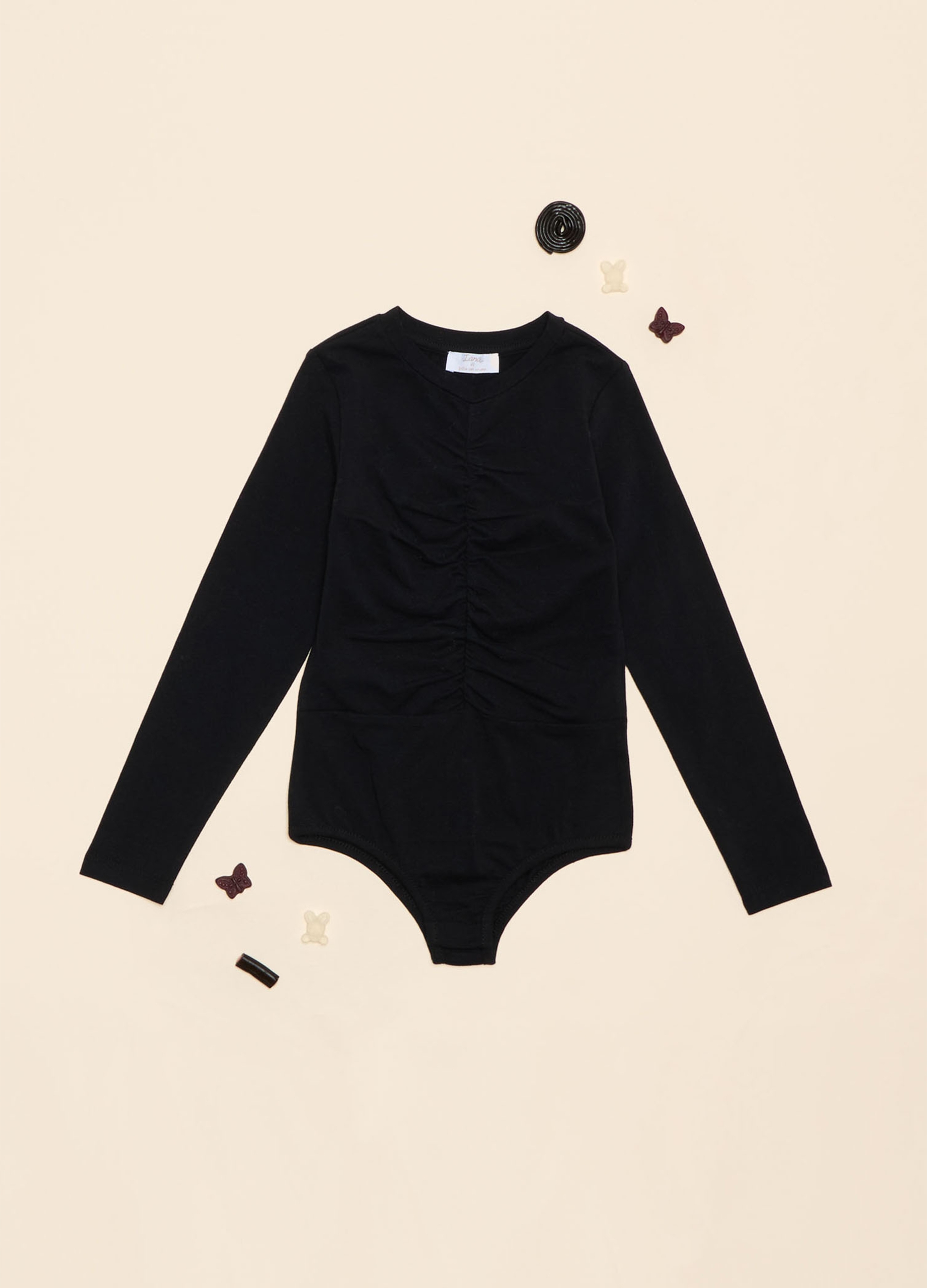 Women's casual t-shirt in black stretch cotton. Perfect for every season, with a comfortable and versatile cut. Ideal for casual and sporty outfits. A basic garment to have in your wardrobe.