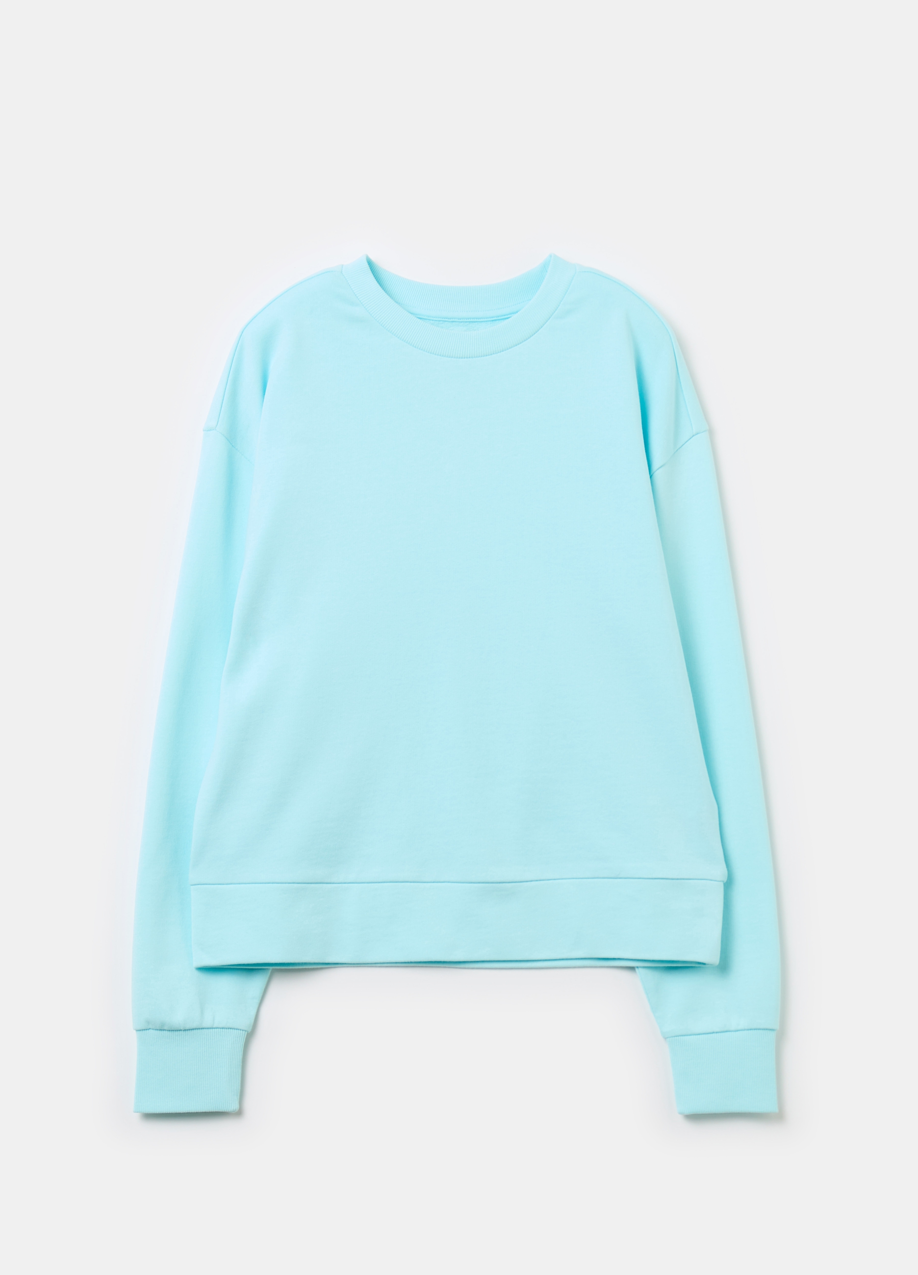 Women's Round Neck Sweatshirt is perfect for autumn and winter. Its blue color is versatile and easy to match with other garments. Made of soft and comfortable fabric, it is ideal for creating casual and comfortable outfits. With its simple and modern design, it is an indispensable garment in the wardrobe of every woman.