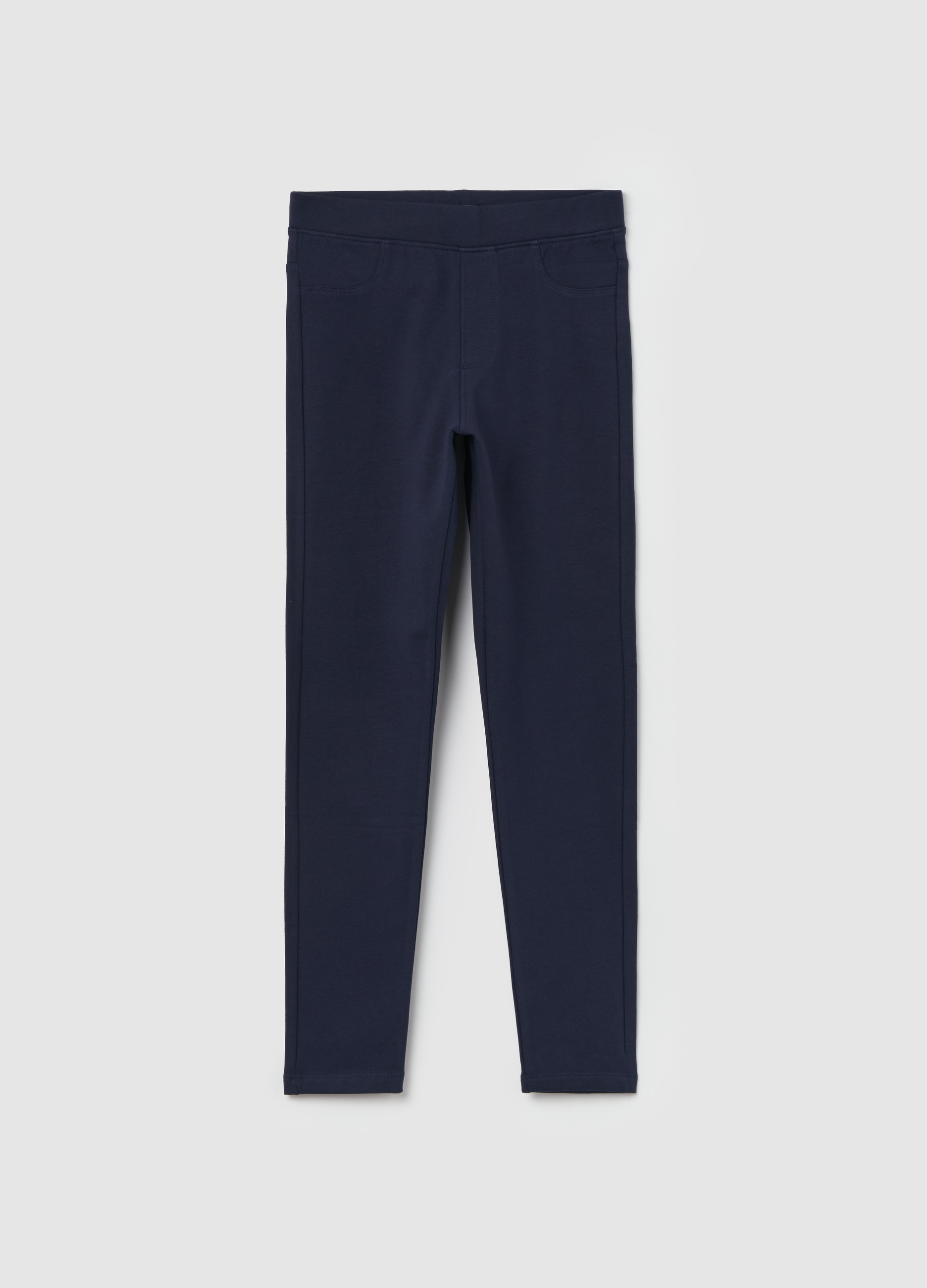 Treggings in cotton stretch woman of blue color, perfect for a casual or sports look. Made with high quality materials, they are comfortable and versatile, suitable for all seasons. With elastic waist for a comfortable and tight fit, ideal for a fashionable and comfortable look. An essential garment in the wardrobe of every modern woman.