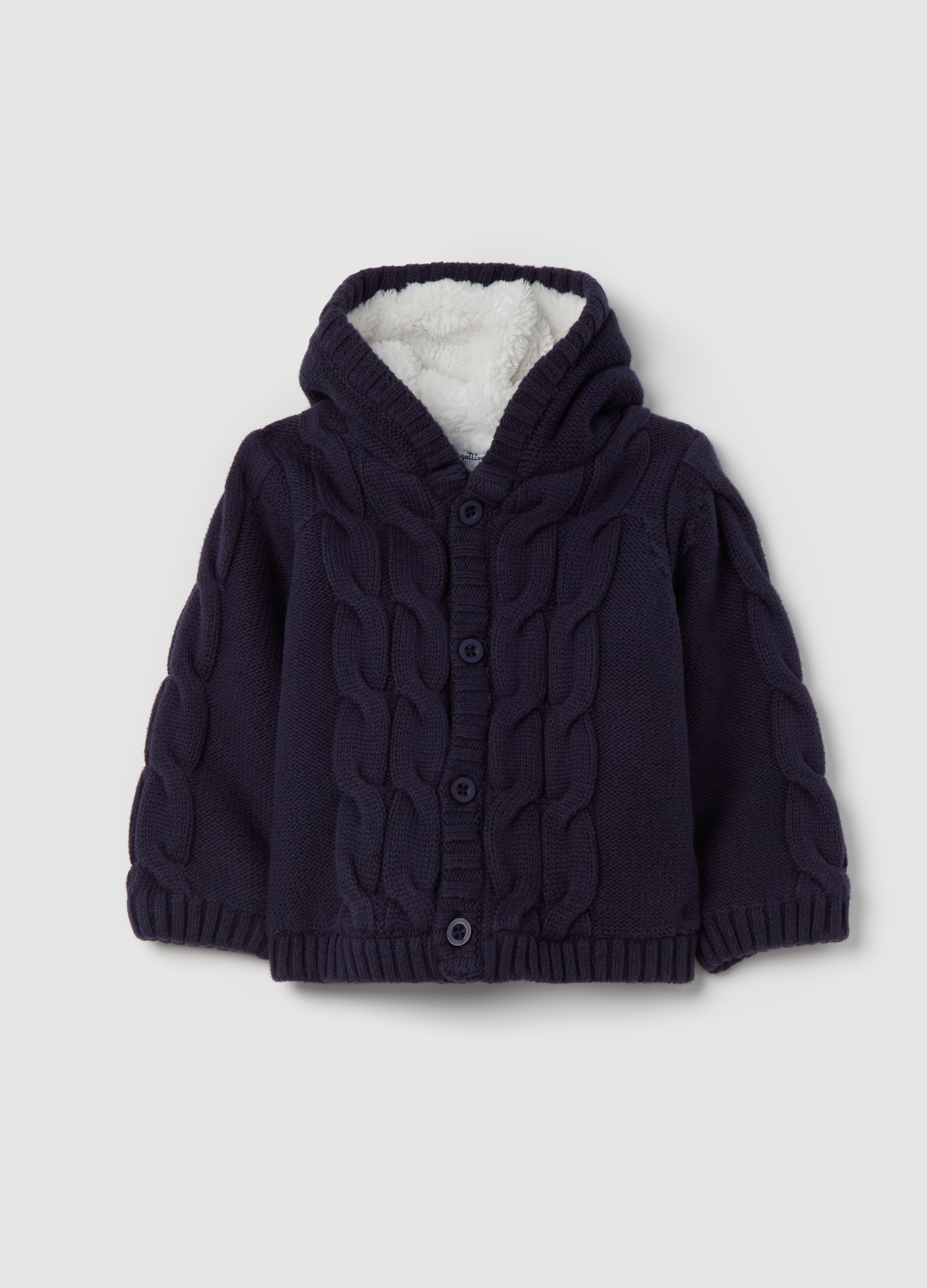 Casual unisex blue winter jacket with inner hood in sherpa. Perfect for autumn and winter, its versatile design fits every outfit. Made with high quality materials, it offers comfort and style on every occasion. Available in sizes 3 and 6.