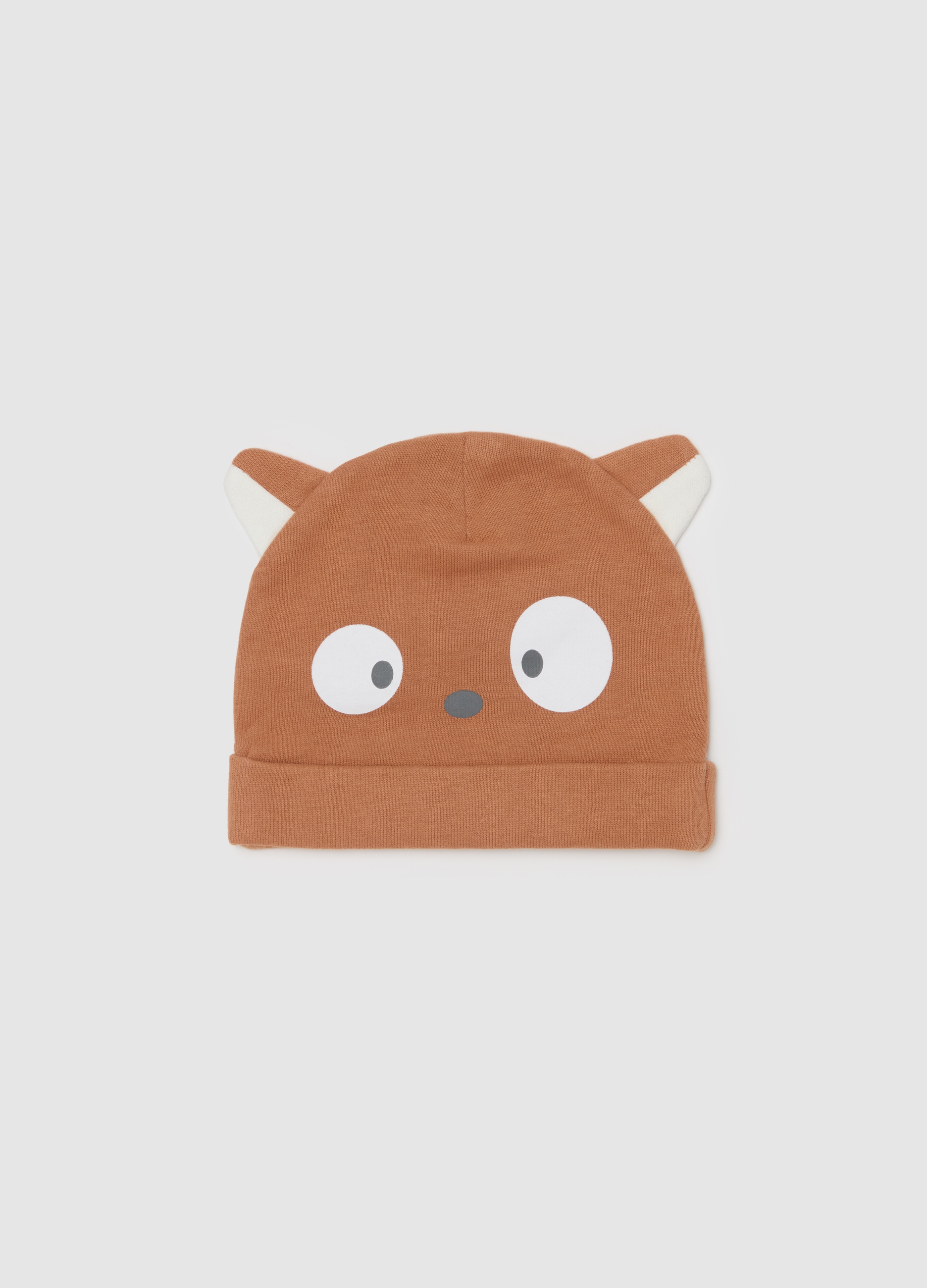 FAGOTTINO Organic Cotton Beret With Earrings and Unisex Printing Brown ONE SIZE