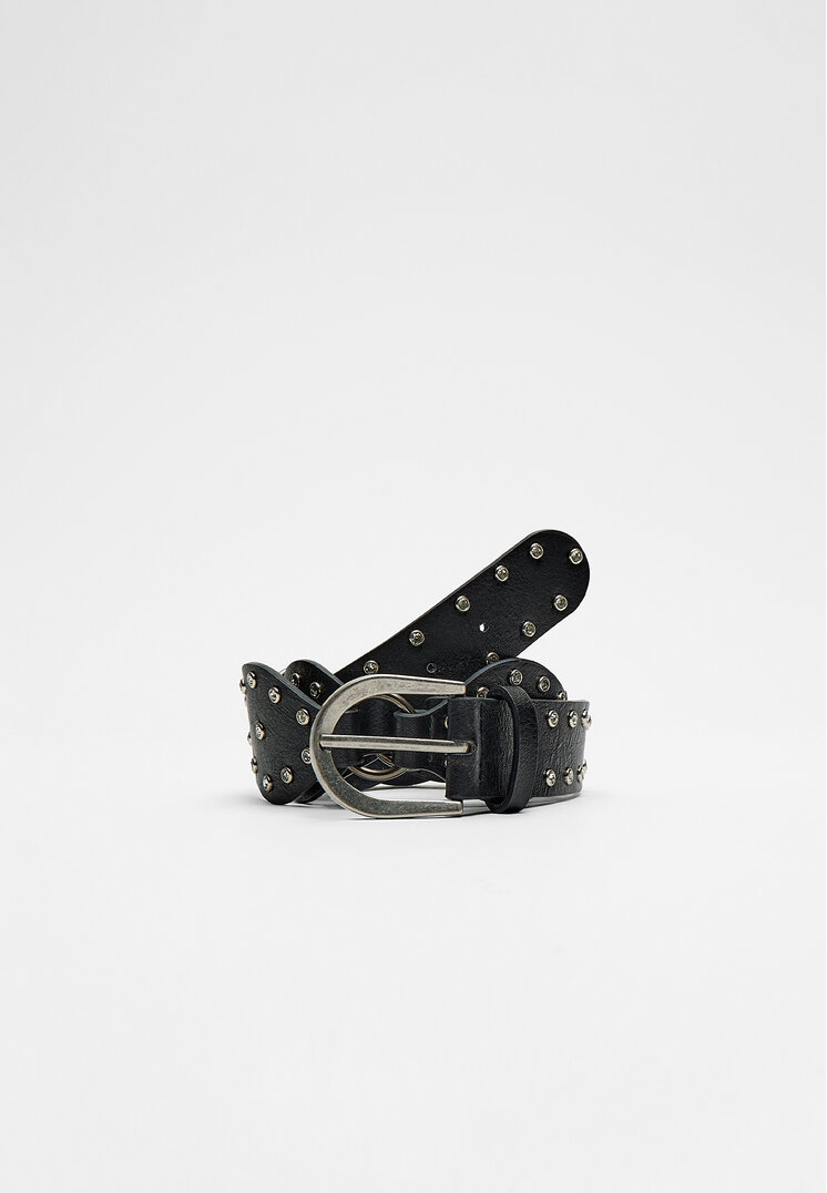 Belt with studs and rhinestones, available in black hue. Perfect to complete casual and elegant look during spring/summer. Made with high quality materials, it gives a touch of style and glamour to every outfit. Available in different colors to fit each preference.