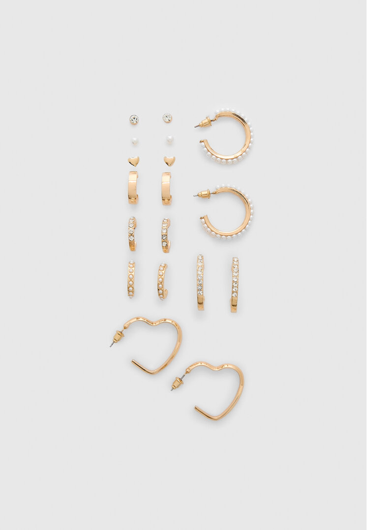 rhinestone set 9 earrings with rhinestones and pearls gold os_set 9 earrings with rhinestones and pearls