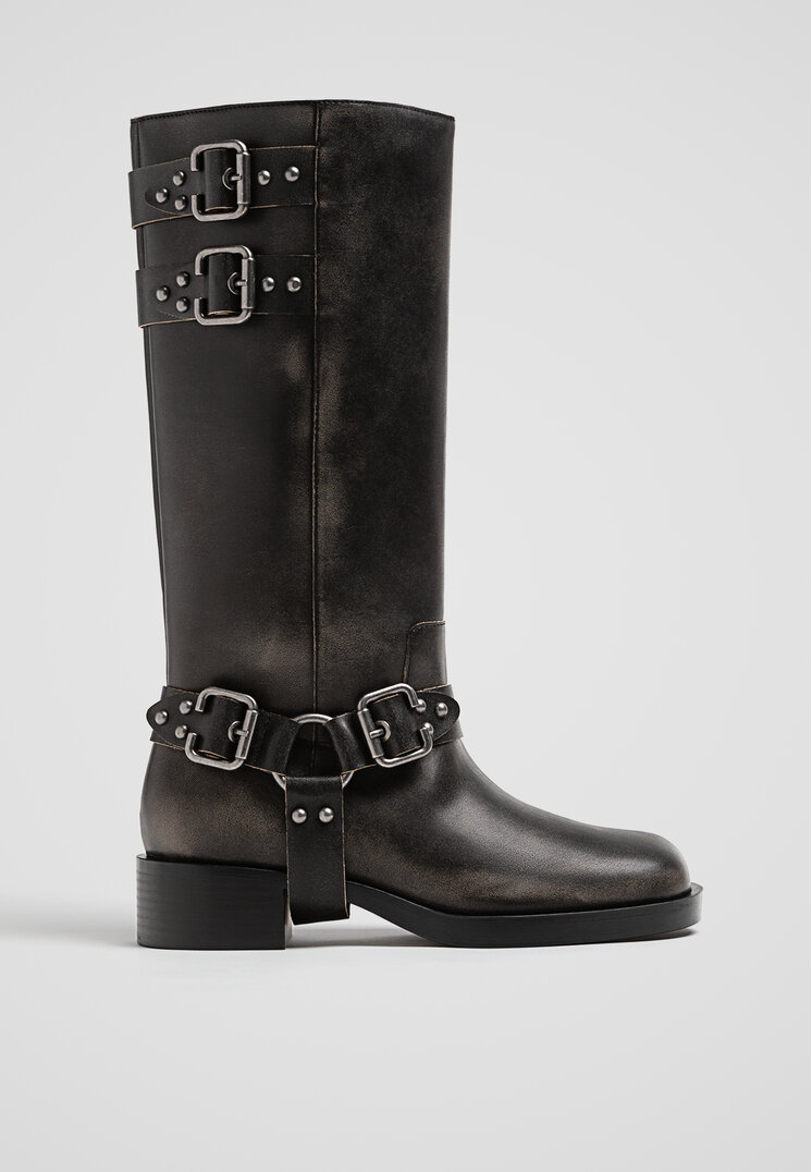 stradivarius ankle boots bass effect consumed with grey buckles 40_stivali low style biker woman available in black worn effect. straps with buckles on the upper and upper part of the leg. heel height: 6.5