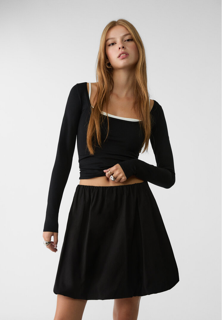 stradivarius balloon skirt black m_skirt with elasticized average waist.