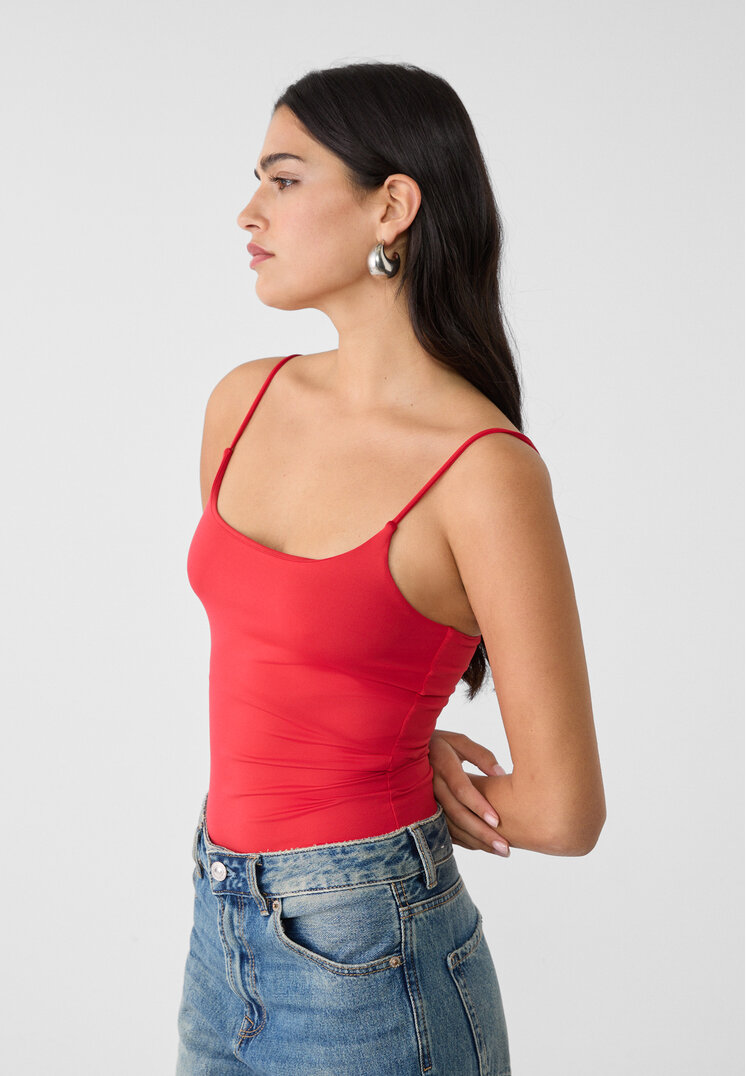 stradivarius body with thin straps red xl_body adherent with round neck and thin shoulder straps. closure on the bottom with automatic buttons. available in different colours.
