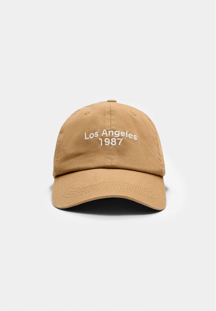 Los Angeles cap, light camel, perfect to complete your casual or elegant look during spring/summer. Made with lightweight and breathable material, this accessory will make you feel fresh and fashionable on any occasion. Its neutral color easily matches any outfit, making it a must-have in your wardrobe. Add a touch of style with Stradivarius' Los Angeles cap.