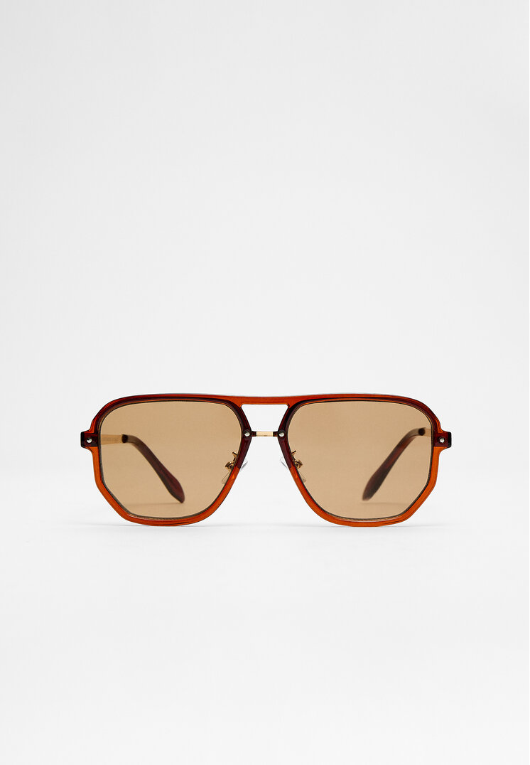 Brown combined sunglasses perfect for spring/summer. Ideal for a casual and trendy look. They protect the eyes from sunlight and complete your outfit with style. Made with high quality materials to ensure durability and comfort.