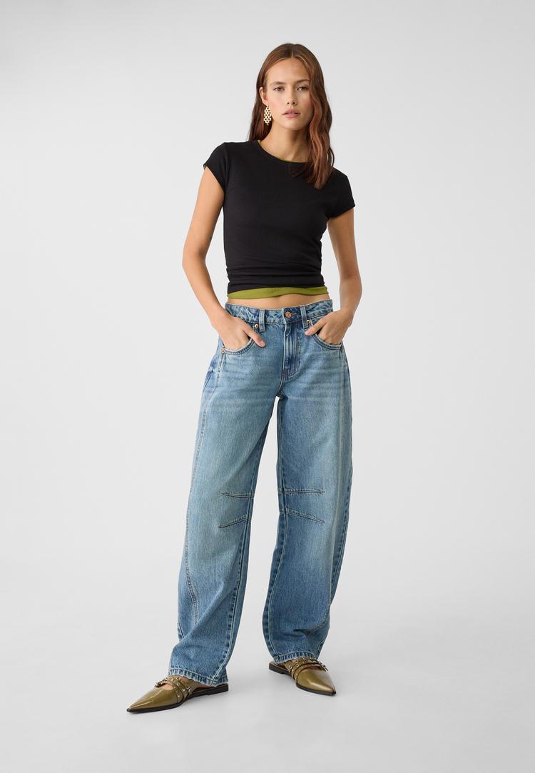 stradivarius d82 jeans balloon fit denim blue medium 44_jeans to medium waist with loops. front pockets and back applied pockets. curved leg. front closure with zipper and metal button. available in different colours.