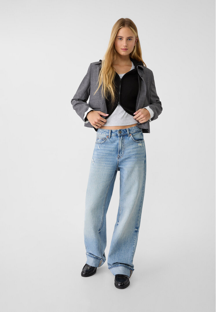 stradivarius d92 straight wide denim blue 46_jeans straight wide fit with five pockets. front closure with zipper and metal button. waist: high waist, all' height of ' navel fabric: vintage effect, 100%